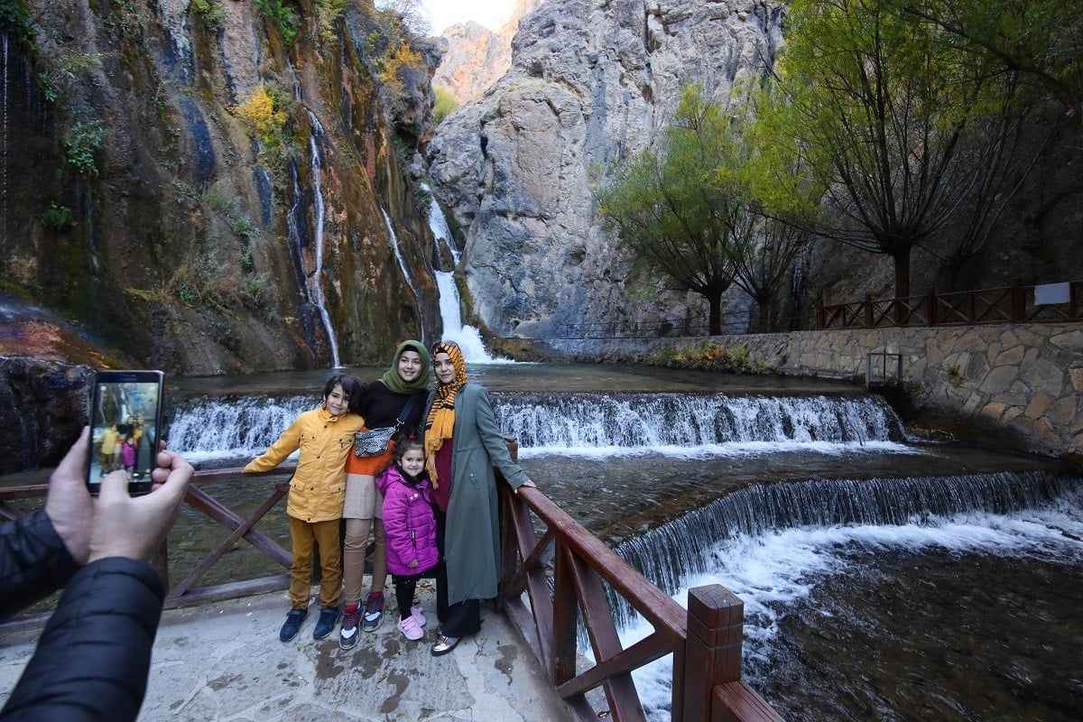 Şelalenin sonbaharda farklı bir güzelliğe büründüğünü aktaran Yılmaz, "Eşim Malatyalı olmasına rağmen ilk defa geliyoruz.