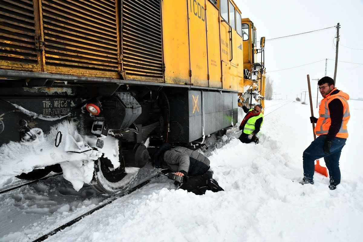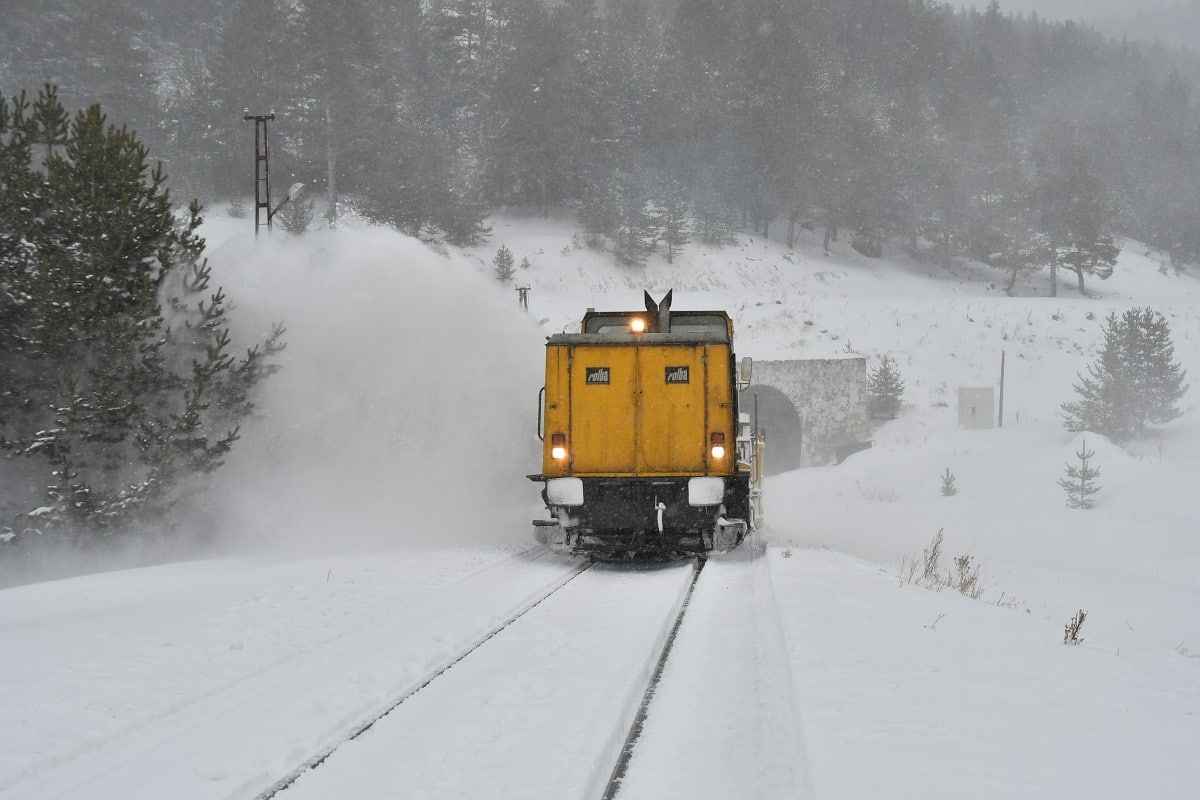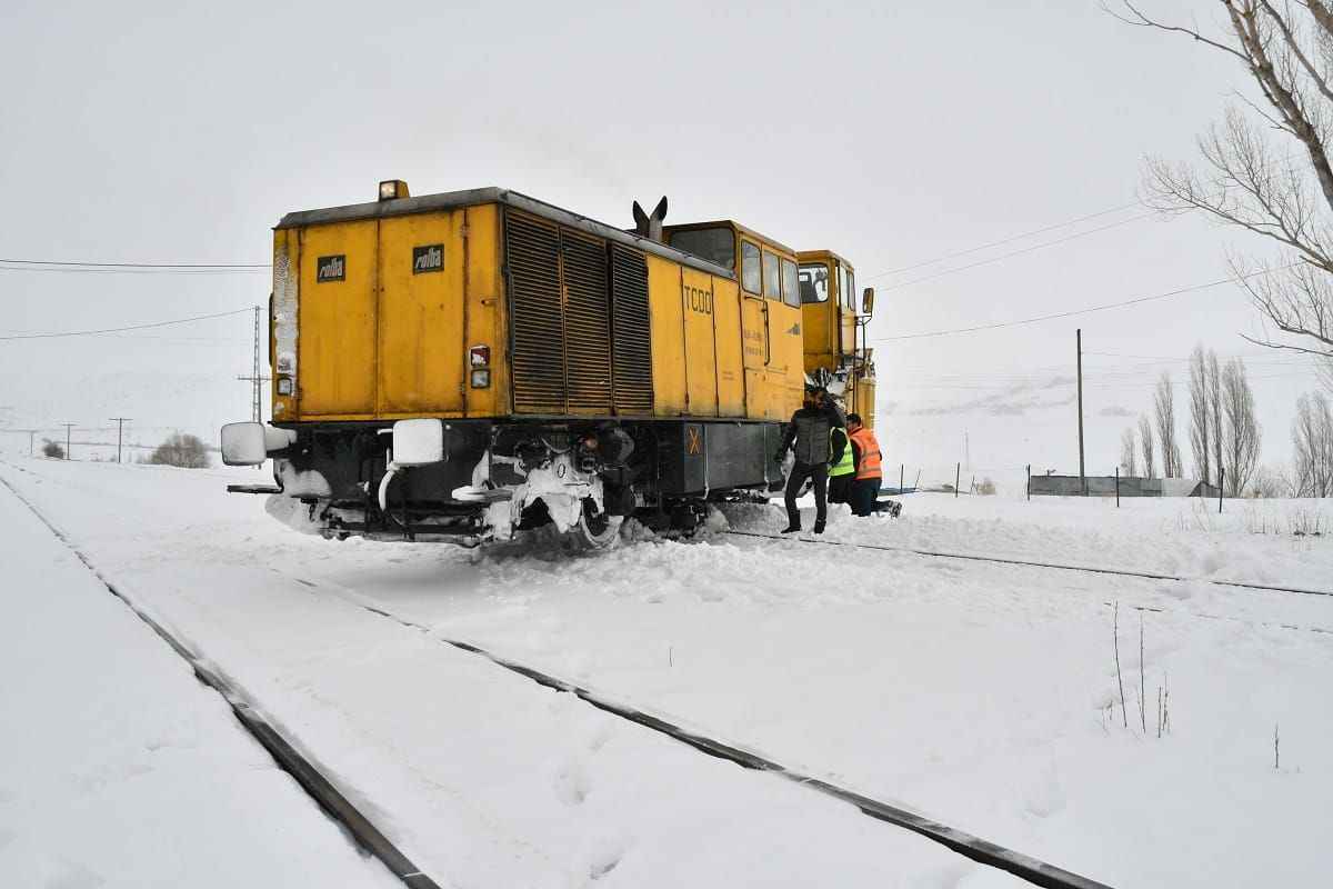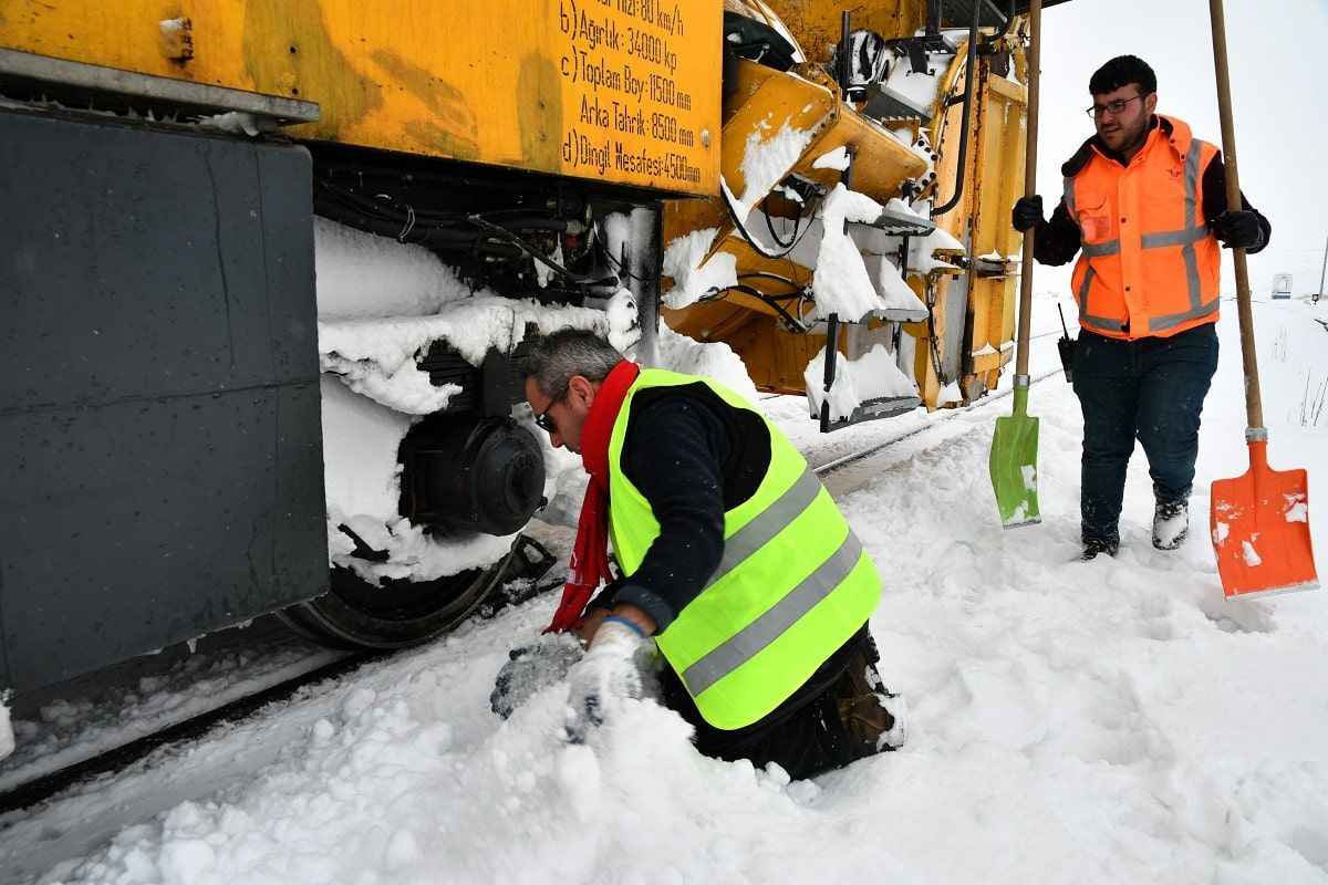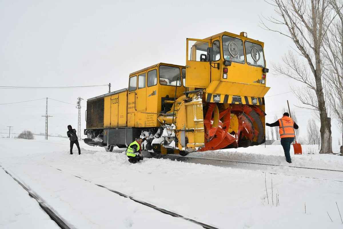 Hava sıcaklığının sıfırın altında 31 dereceye kadar düştüğü bölgede çetin kış şartlarında görev yapan TCDD çalışanları, kar küreme makineleri ile demir yollarını sürekli açık tutmak için büyük gayret sarf ediyor.