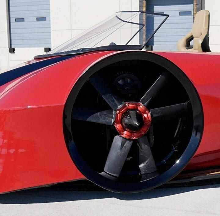 Arosa isimli aracın ilk bakışta devasa tekerlekleri var gibi görünüyor olsa da şirket yöneticileri tekerleğe benzeyen bölümün aracın hareket kabiliyetini artıran fan sistemi olduğunu vurguladı.