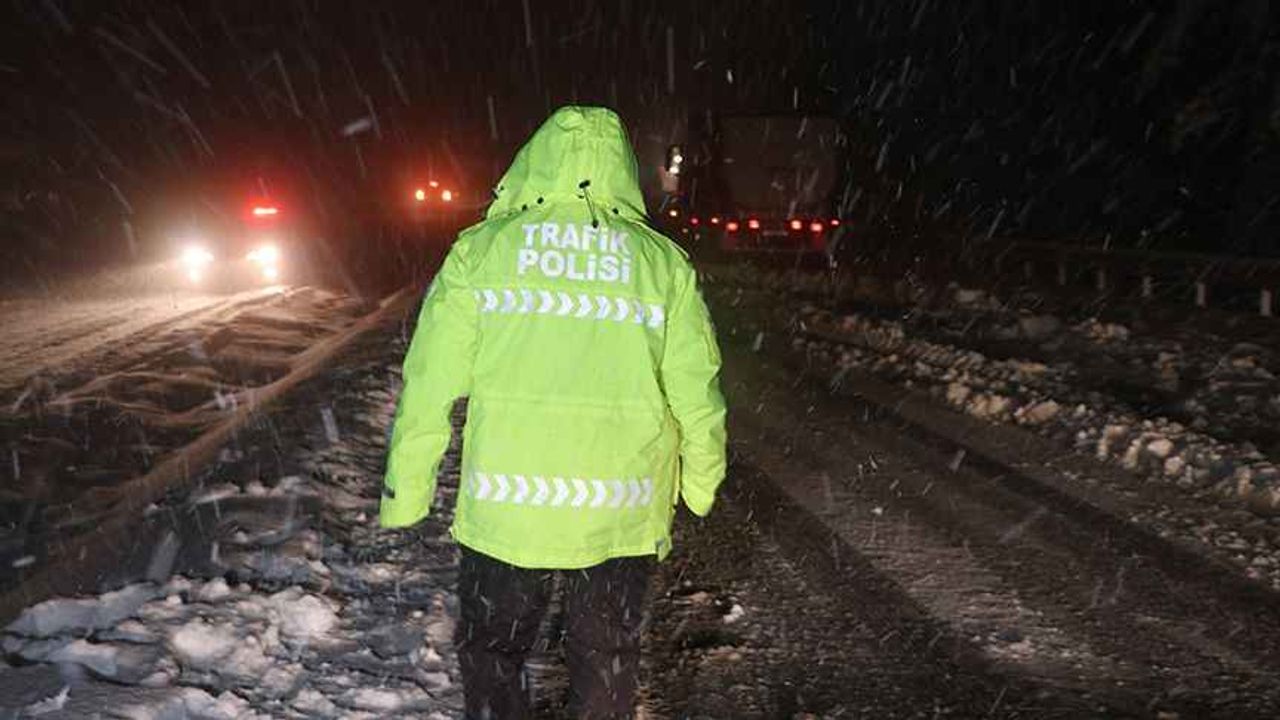 Denizli'de etkili olan yoğun kar yağışı nedeniyle polis ekipleri Denizli-Antalya yolunu tedbir amacıyla kapattı.