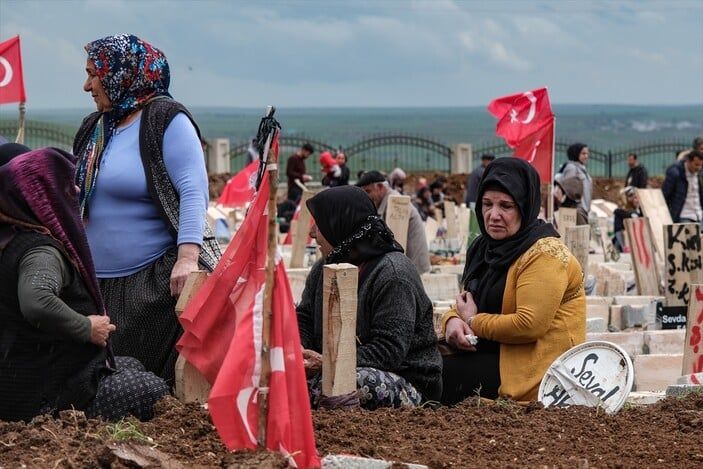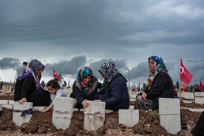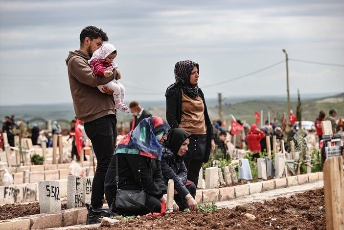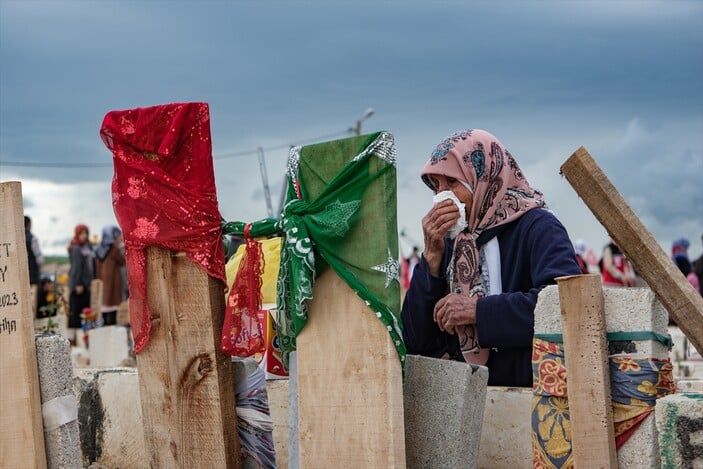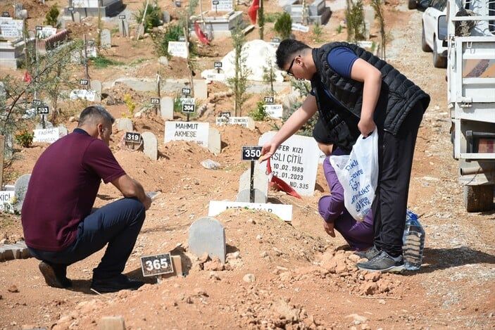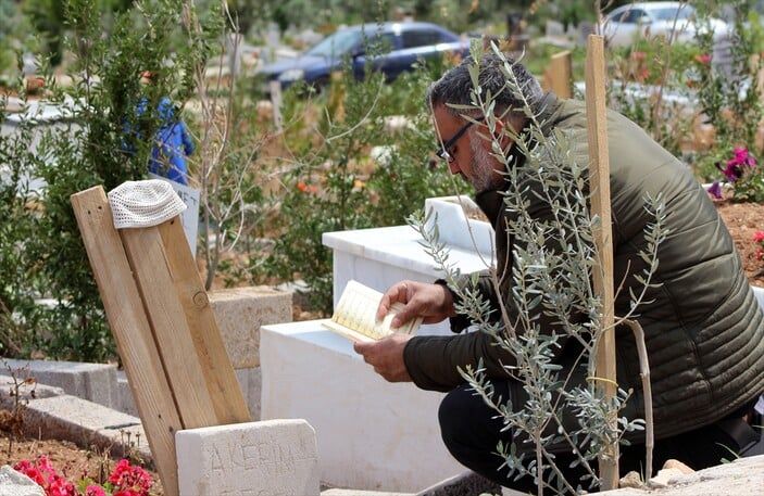 Kahramanmaraş merkezli depremlerden etkilenen kentlerde hayatını kaybedenler için oluşturulan mezarlıklarda, Ramazan Bayramı arifesinde yoğunluk oluştu. Ziyaret sırasında gözyaşları sel oldu, feryatlar yürekleri dağladı.