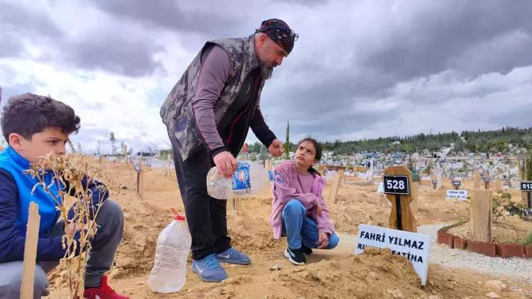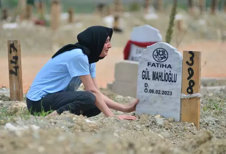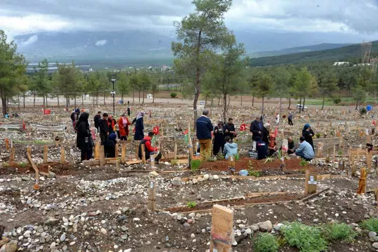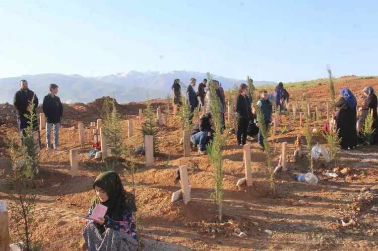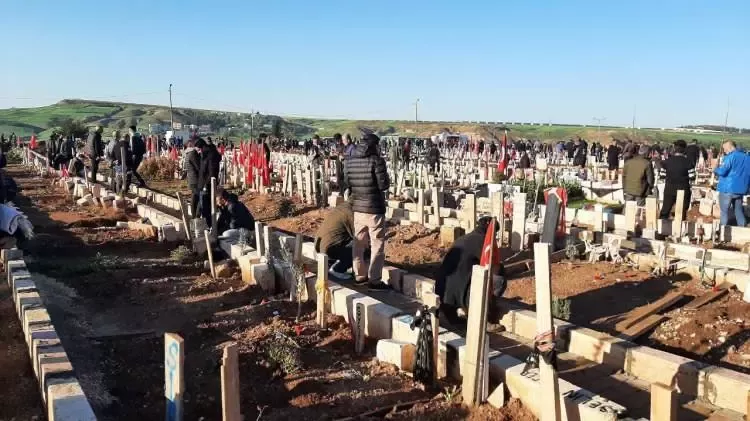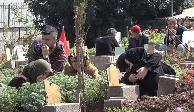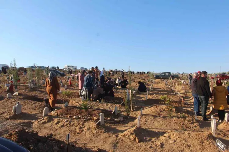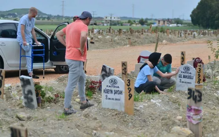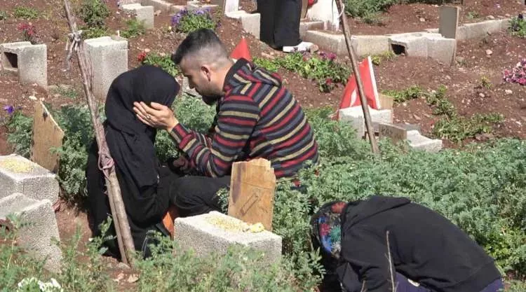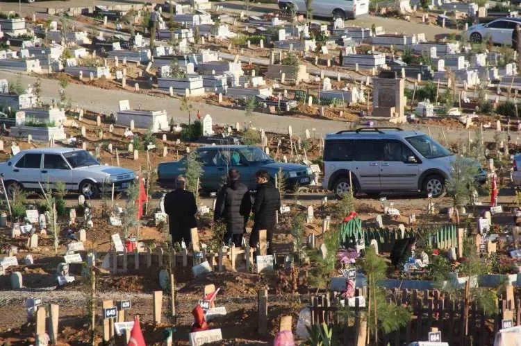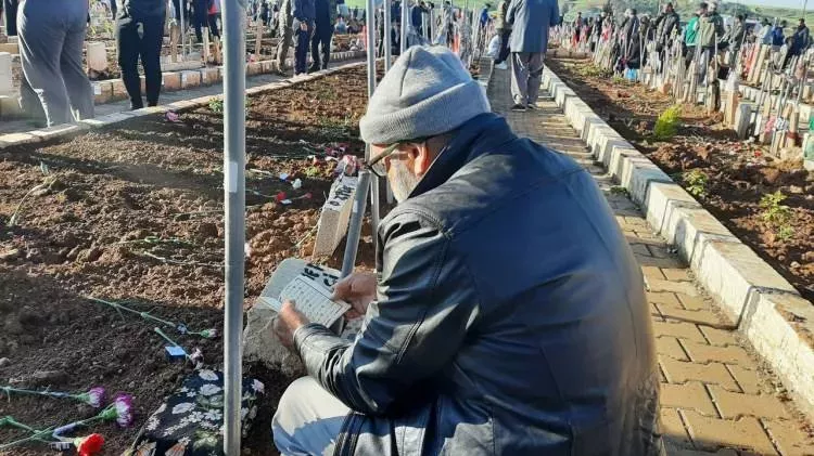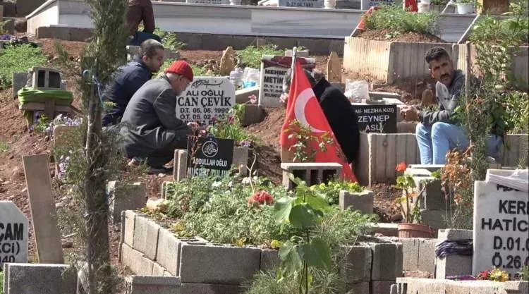 Asrın felaketinde yakınlarını kaybeden depremzedeler, bayramın ilk gününde mezarlıklara akın etti.