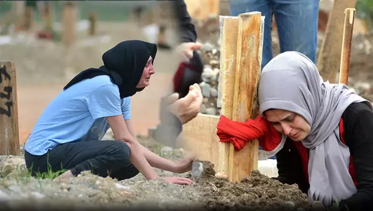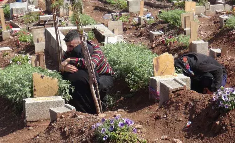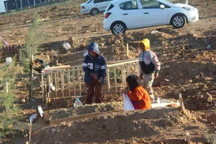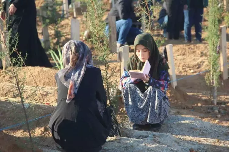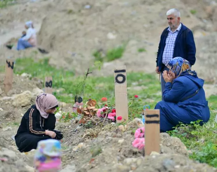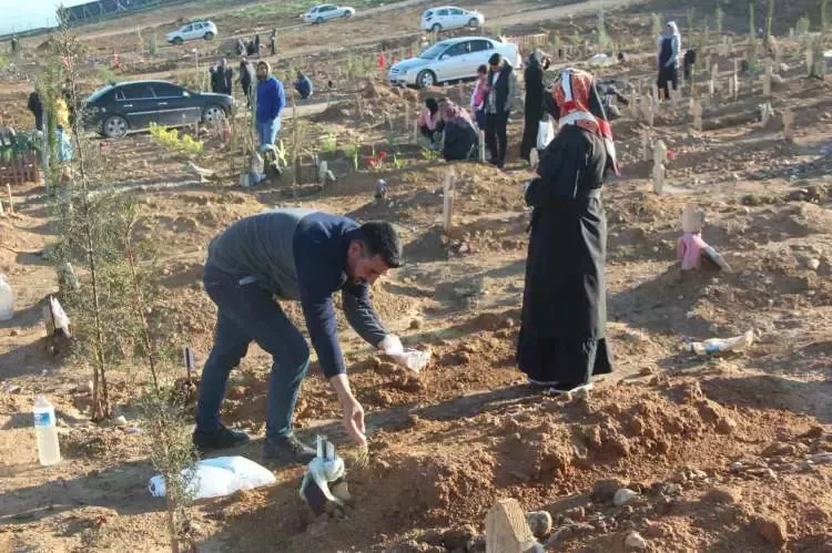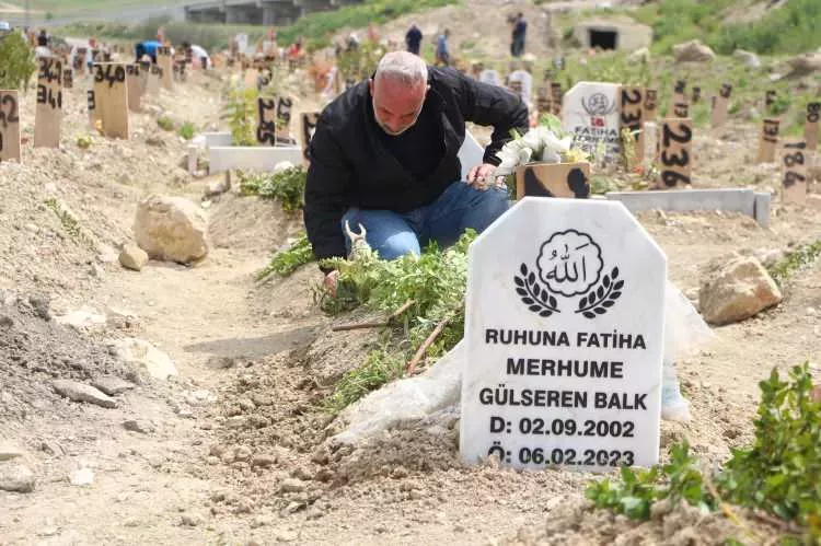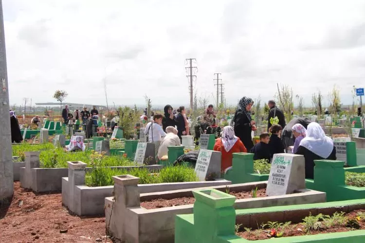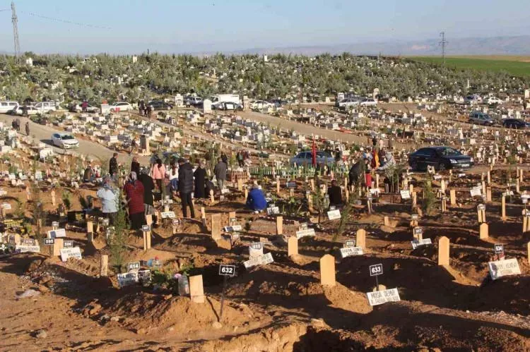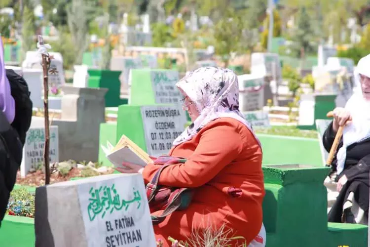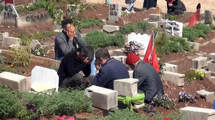 Asrın felaketinde yakınlarını kaybeden depremzedeler, bayramın ilk gününde mezarlıklara akın etti.