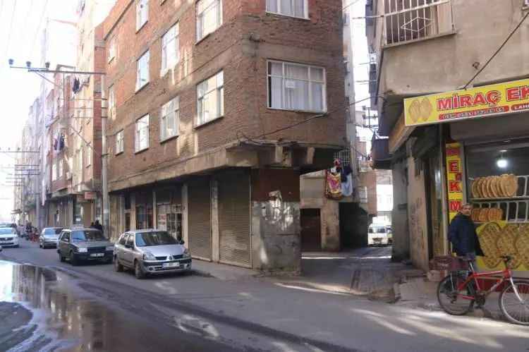 Merkez Bağlar ilçesi Yunus Emre Mahallesi Kardeşlik Caddesi üzerinde bulunan, alt katı iş yeri, üst katları ile ev olarak kullanılan ve yaklaşık 40 yıl önce inşa edildiği düşünülen apartman ilginç bir görüntü oluşturuyor.