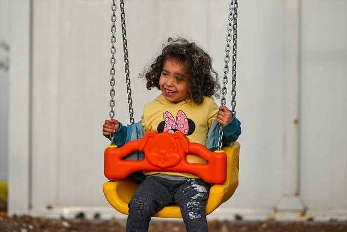 Kahramanmaraş merkezli depremlerden etkilenen kentte, çadır ve konteyner kentlerde yaşayan çocukların etrafa saçtığı tebessümler acıyı hafifletiyor.