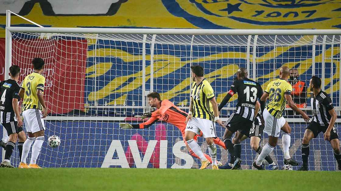 Beşiktaş, Süper Lig'in 10. haftasında sarı-lacivertli rakibini deplasmanda 4-3 yendi. Süper Lig'in 10. haftasındaki derbide Fenerbahçe ile Beşiktaş arasında oynanan karşılaşmanın ilk yarısı siyah-beyazlıların 2-1 üstünlüğüyle sona erdi. 2. dakikada Fenerbahçe çok net bir gol şansını değerlendiremedi. Sağdan Ozan'ın ara pasıyla çizgiye inen Pelkas'ın yerden içeri çevirdiği topun gelişine Perotti'nin şutunda meşin yuvarlak savunmada Rosier'e çarptı. Atağın devamında topu yeniden önünde bulan Perotti'nin sol ayağıyla altıpasın sağından yaptığı vuruşta meşin yuvarlak üstten auta gitti.