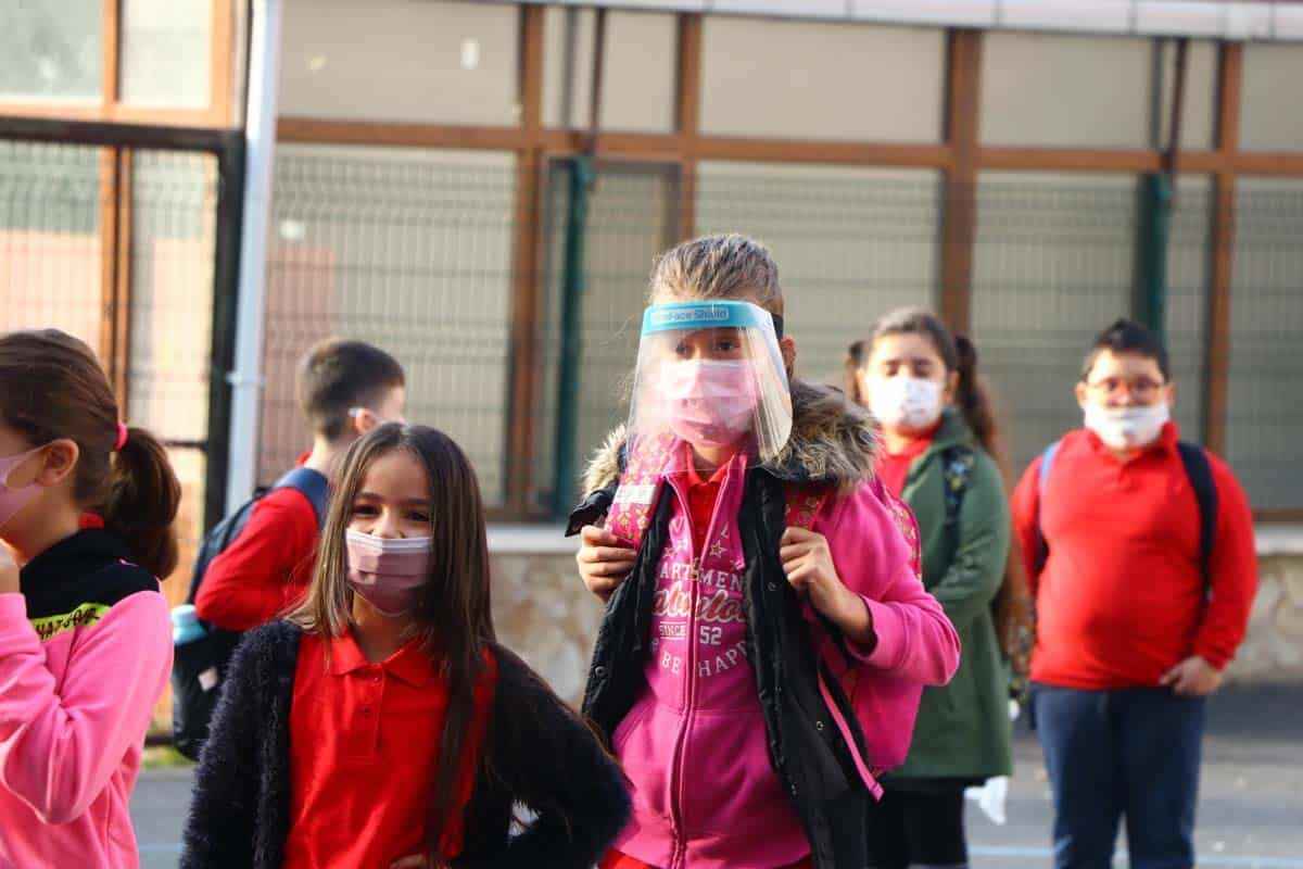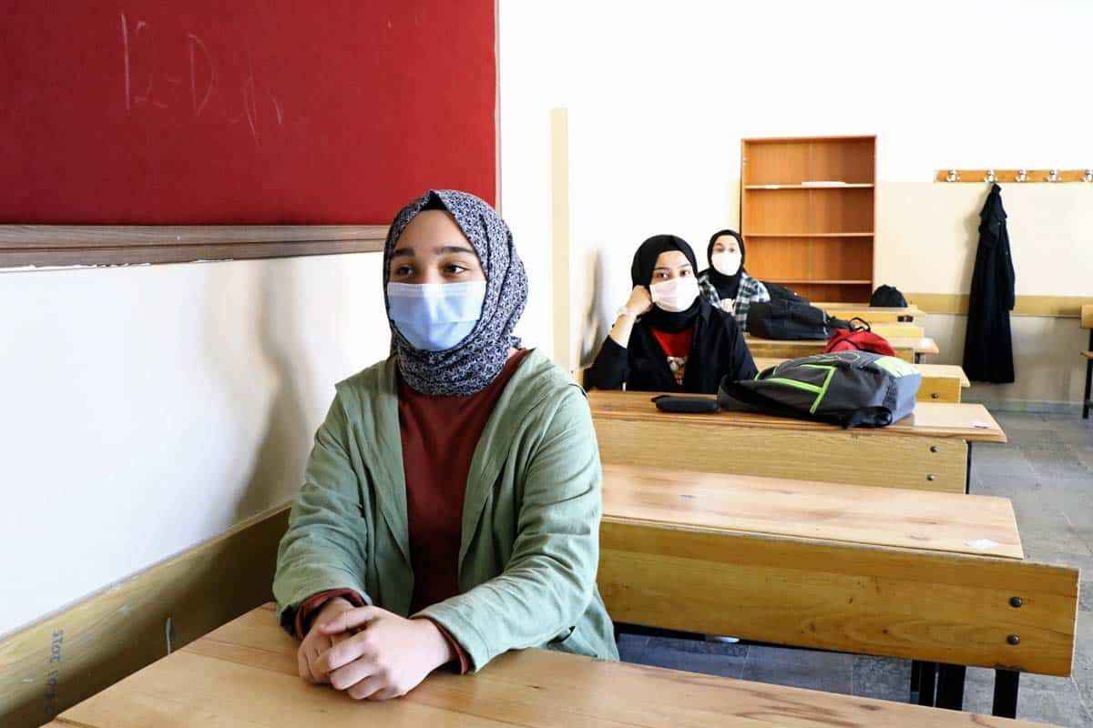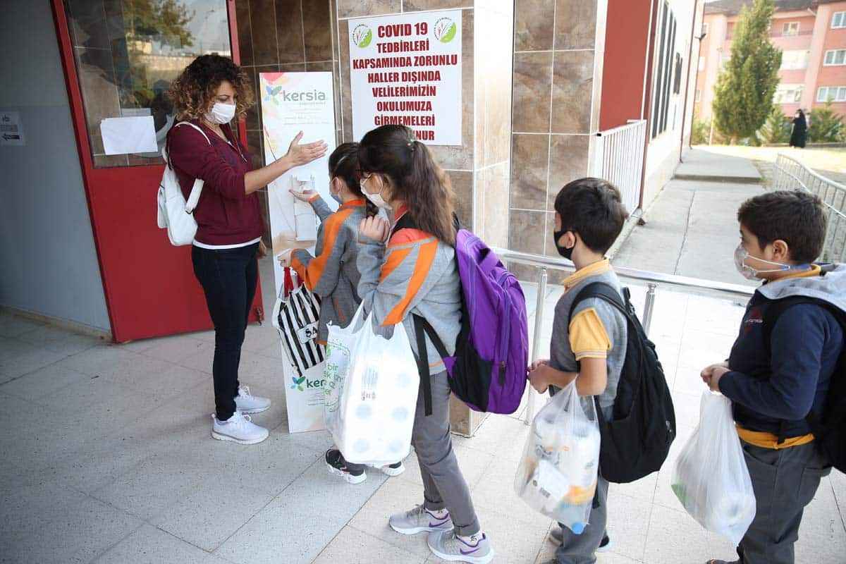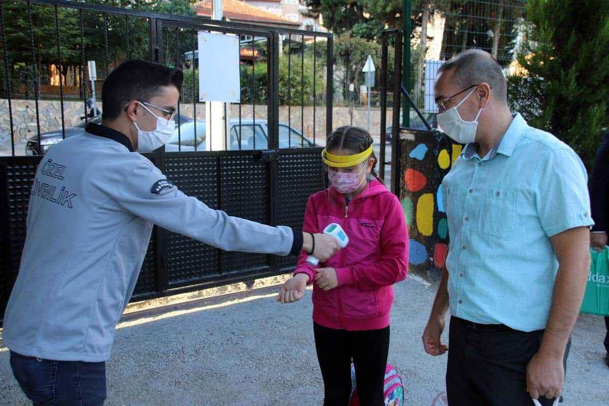 Maskelerini çıkarmamaları konusunda uyarılan öğrencilerin elleri dezenfektanla temizlendi. Ayrıca sınıflara da dezenfektan konulduğu görüldü.