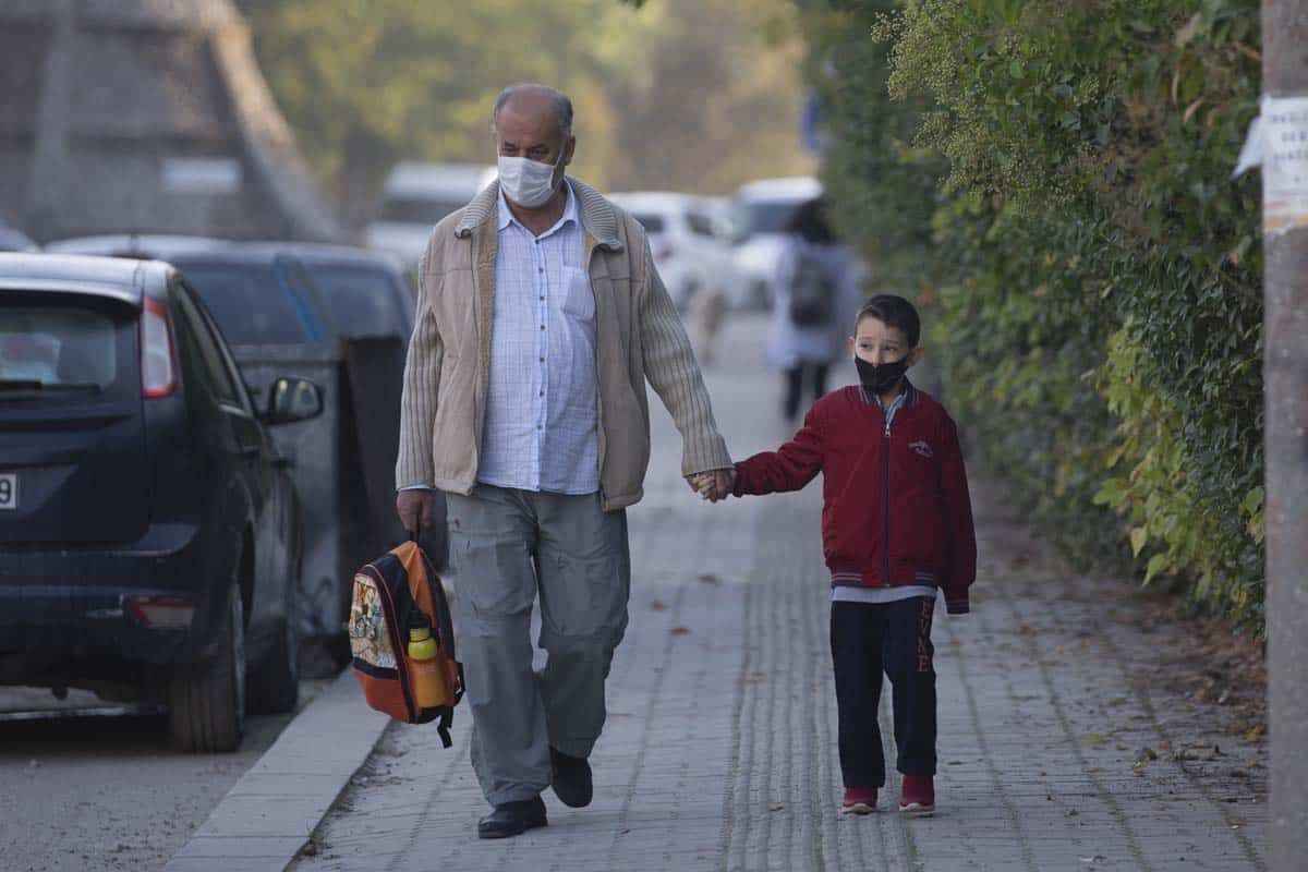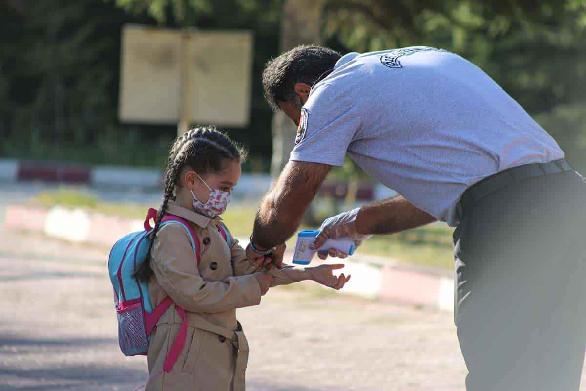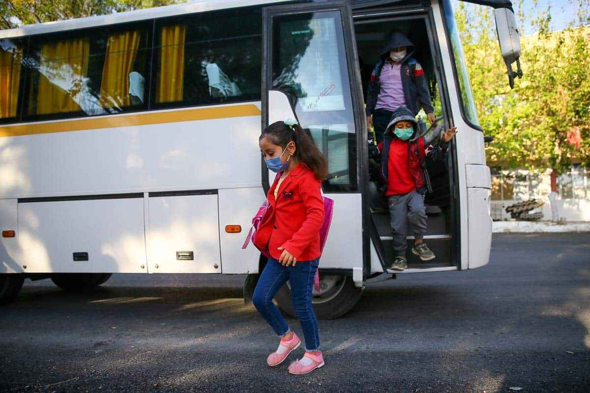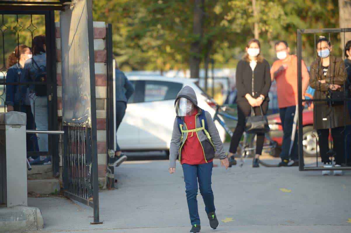 Maskelerini çıkarmamaları konusunda uyarılan öğrencilerin elleri dezenfektanla temizlendi. Ayrıca sınıflara da dezenfektan konulduğu görüldü.