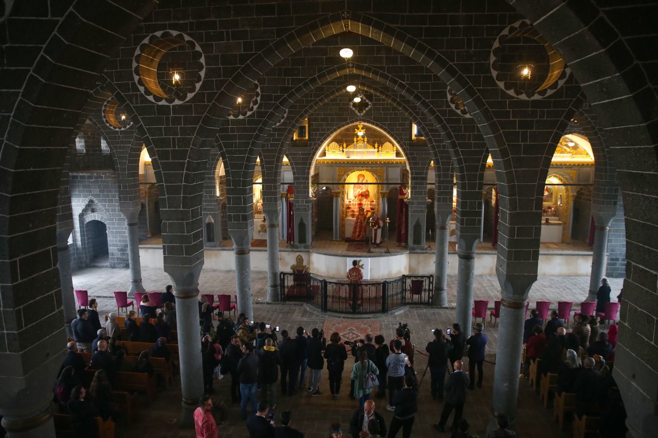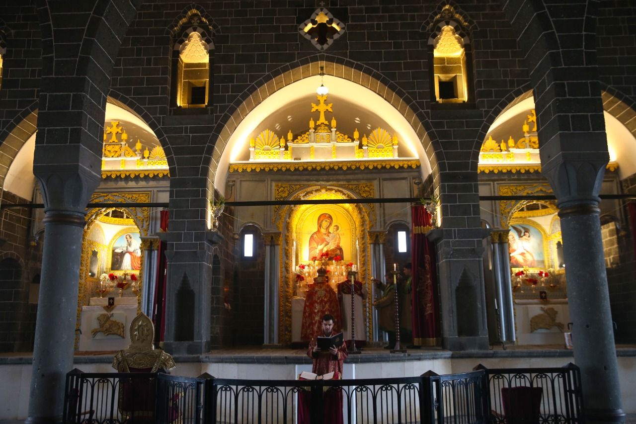 Merkez Sur ilçesinde terör örgütü PKK'nın saldırıları sonucu zarar gören ve restorasyonu tamamlandıktan sonra geçen yıl açılışı gerçekleştirilen Surp Giragos Ermeni Kilisesi'nde Paskalya Bayramı dolayısıyla ayin yapıldı.