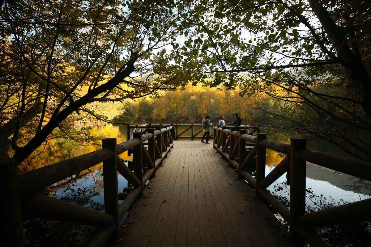 Yedigöller Milli Parkı, sonbaharda fotoğraf tutkunlarının yanı sıra yeni evlenen çiftlerin de fotoğraf çektirmek için uğrak noktaları arasında bulunuyor.