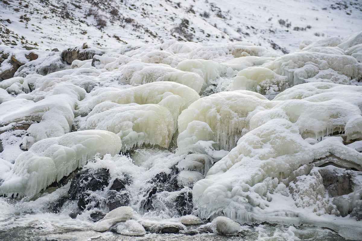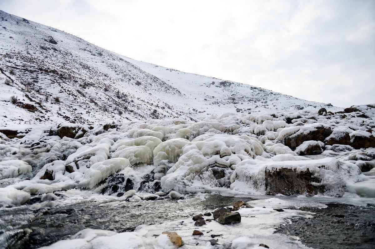 Iğdır'da dondurucu soğuklar nedeniyle akarsuların yüzeyi buzla kaplandı. Tuzluca ilçesindeki buz tutan Ünlendi Deresi, güzel görüntüler oluşturdu.