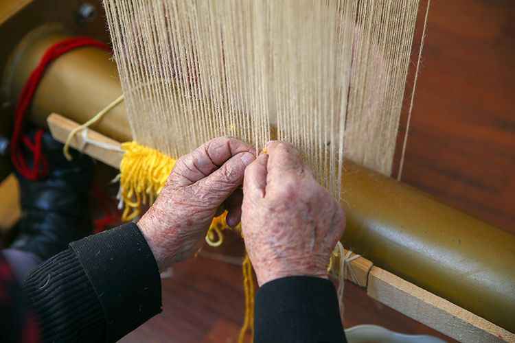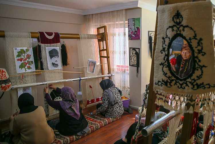 Üç katlı binanın merdivenlerini kimseden destek almadan inip çıkan Sukes, büyük bir heyecanla tezgahının başına geçiyor. Motifleri ilmek ilmek dokuyan Havva Sukes, diğer kursiyerlere de işin püf noktalarını gösteriyor.