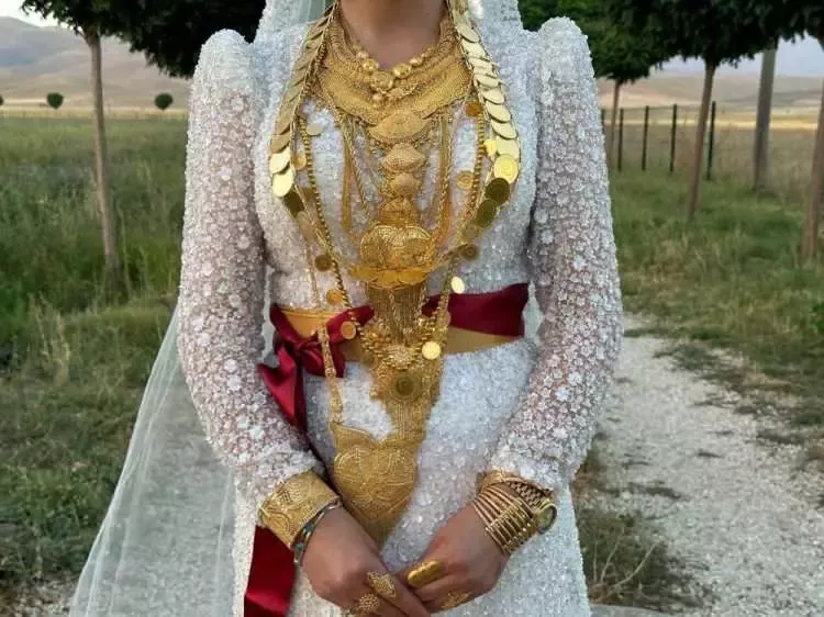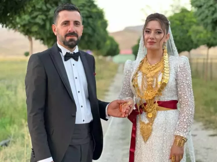 Hakkari’nin Yüksekova ilçesinde dünya evine giren Yüksel Geçirgen ve Sima Bellier çiftine kilolarca altın ve 2 milyon TL takıldı.