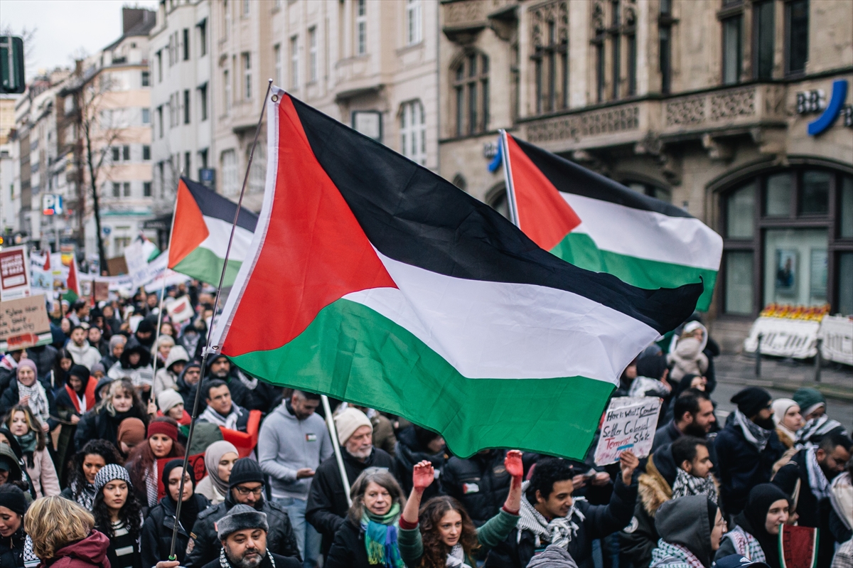 Almanya'nın Düsseldorf kentinde Filistin'e destek gösterisi düzenlendi.
