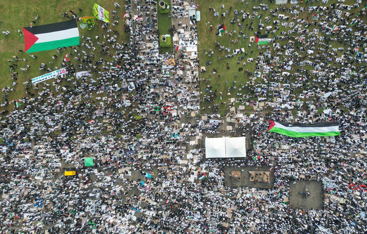 Endonezya'nın başkenti Cakarta'da Filistin'e destek gösterisi düzenlendi. Ellerinde pankart ve Filistin bayraklarıyla toplanan binlerce kişi, İsrail'in saldırılarına karşı Filistin'e destek mesajı verdi.