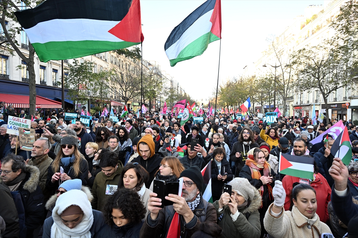 Fransa'nın başkenti Paris'te bir araya gelen çok sayıda gösterici, ellerindeki pankart ve Filistin bayraklarıyla Filistin'e destek mesajı vererek İsrail’in Gazze’ye yönelik saldırılarını protesto etti.
