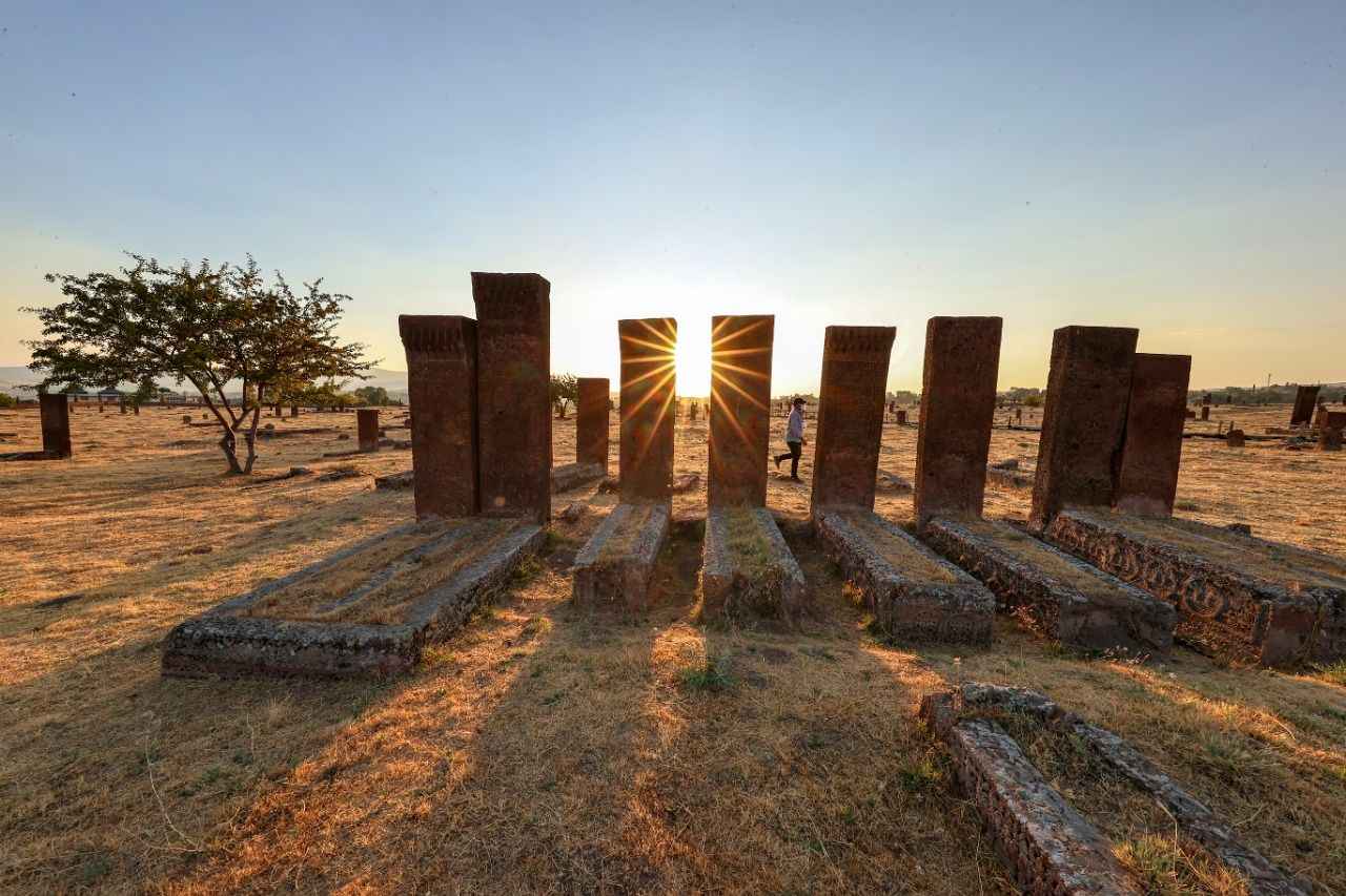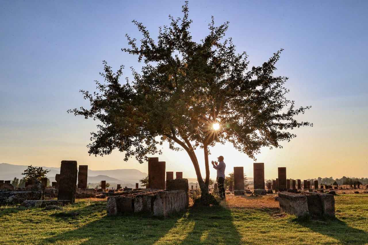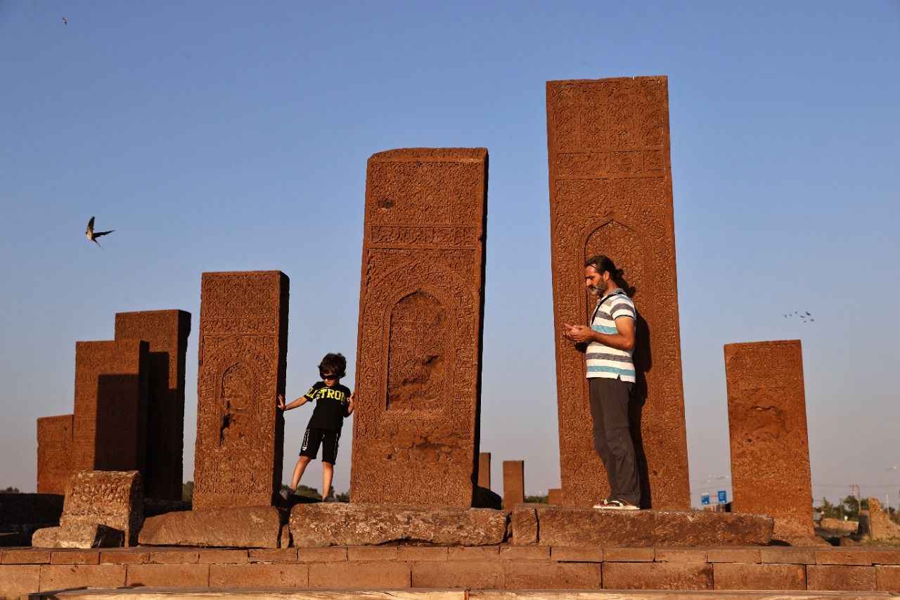 Aralarında birçok ülkenin diplomat ve temsilcilerinin de bulunduğu ziyaretçiler, üzerlerindeki yazılar, kabartmalar, oymalarıyla birbirinden değerli 8 bin 122 mezar taşının bulunduğu mezarlıkta fotoğraf çektirdi.