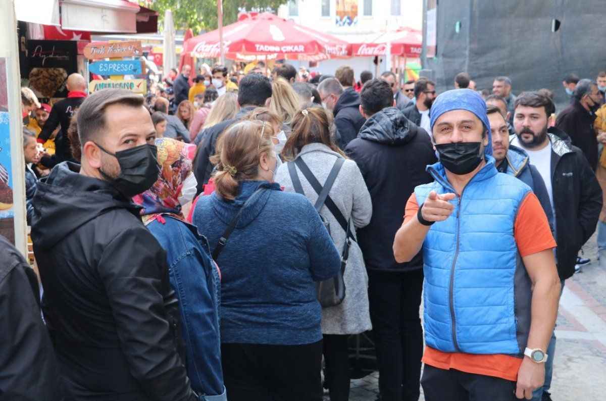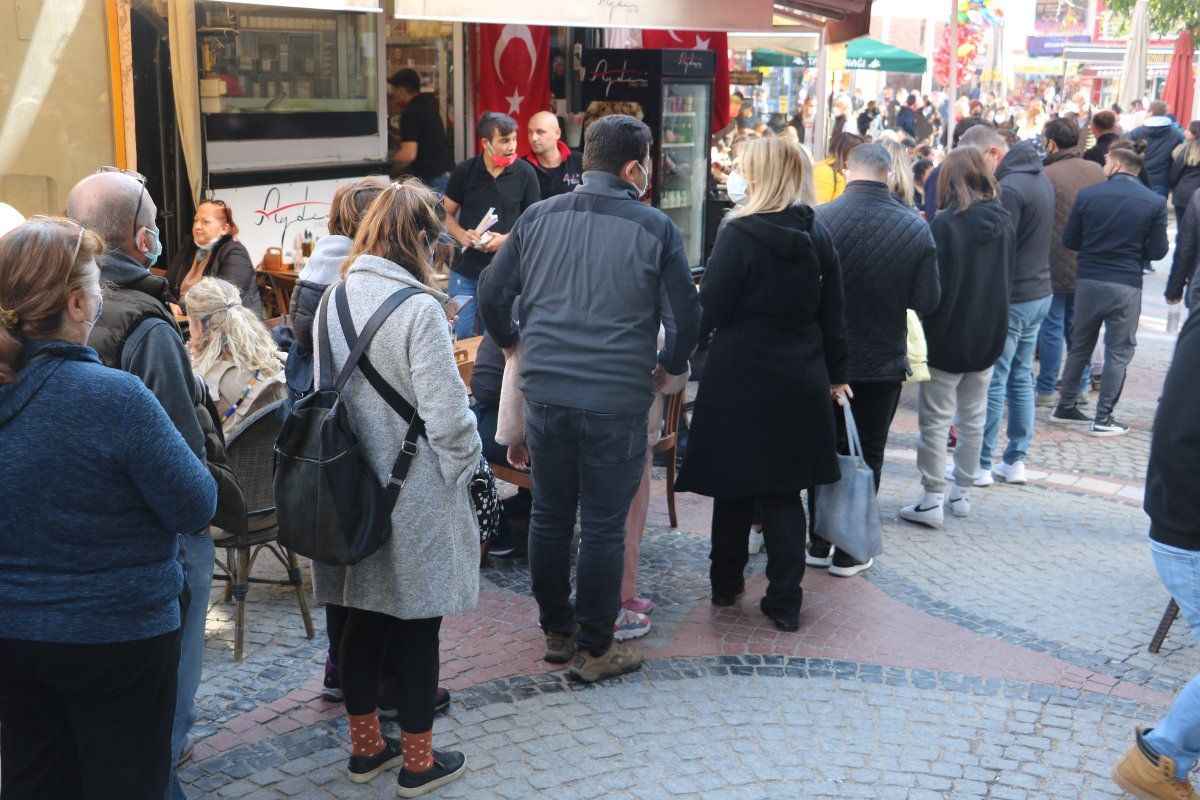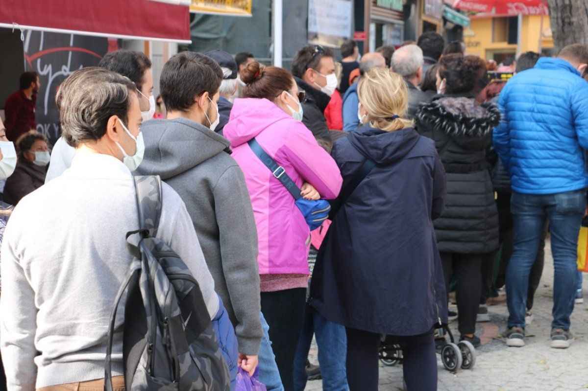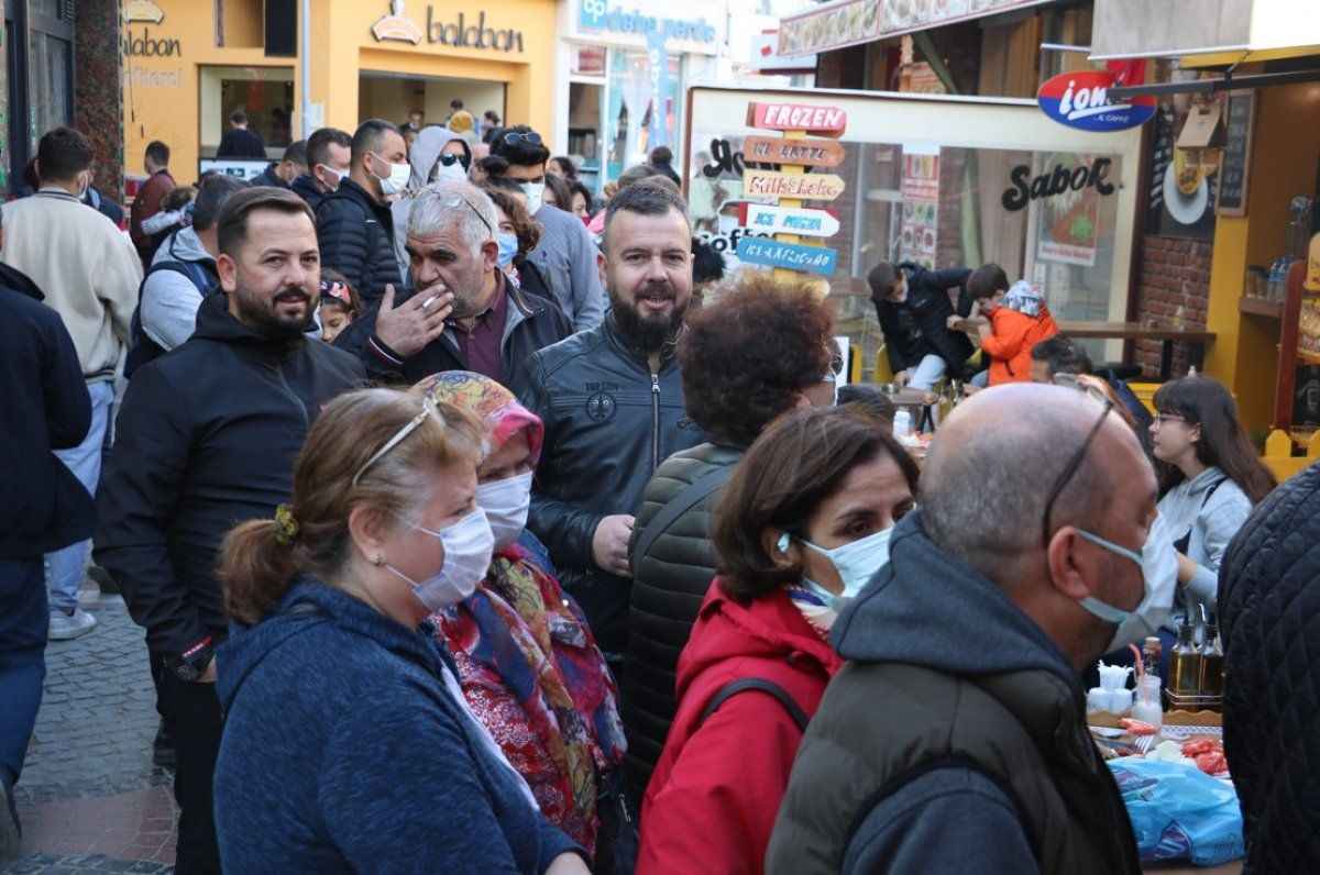 Yerli turistler, onlarca metre kuyrukların oluştuğu restoranların önünde uzun süre bekledi.