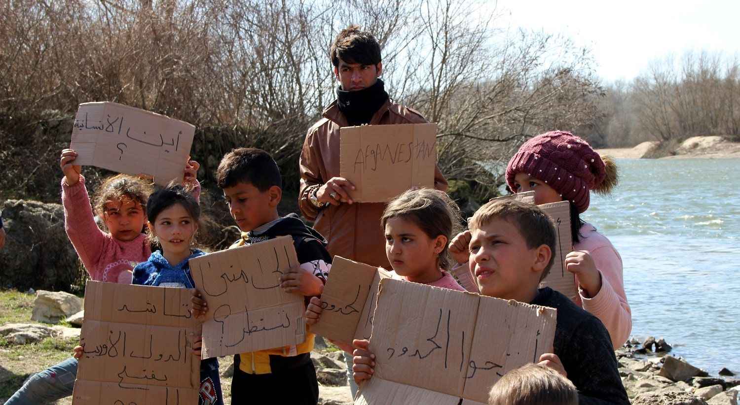 Türkiye-Yunanistan sınırında yer alan Doyran köyünde bekleyişlerini sürdüren çocukların öncülüğündeki düzensiz göçmenlerden oluşan grup, sınırı çizen Meriç Nehri'ne doğru yürüyerek, Türkçe, İngilizce ve Arapça "sınırları açın" pankartı açtı.