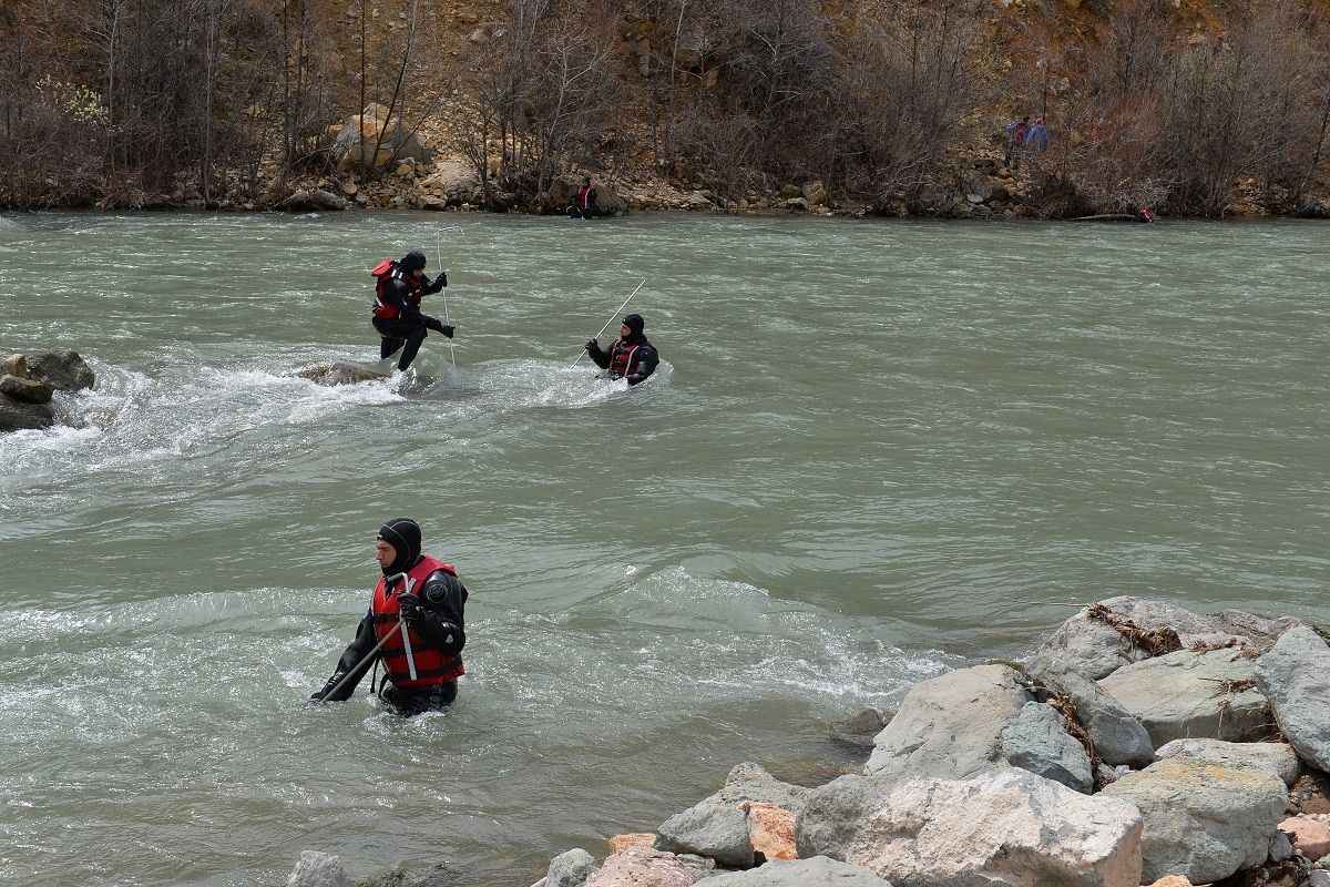 JÖH timleri, Munzur Çayı kıyılarında arama çalışmalarını sürdürürken jandarma personeli de dron ve iz takip köpekleriyle çalışmalara destek veriyor.