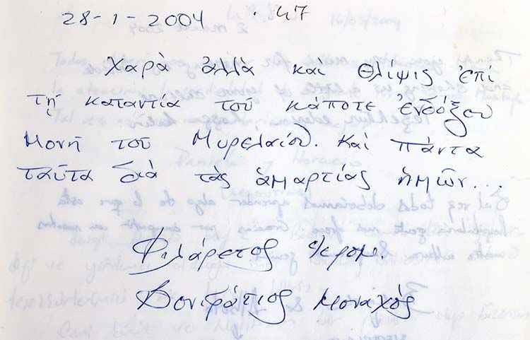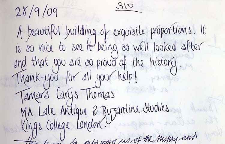 Ziyaretçi defterinde daha çok İngilizce, Almanca, Yunanca ve Türkçe olmak üzere birçok dilden mesajlar yer alıyor. Bunlar içinde görevlilerin nazik davranışları için teşekkürlerin yanı sıra camiden memnun kalındığı ve tekrar gelineceğine dair metinler bulunuyor.