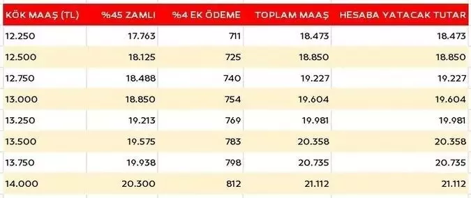 Yüzde 45, yüzde 40, yüzde 35 ve 30 zam verilmesi gündemde olacak.