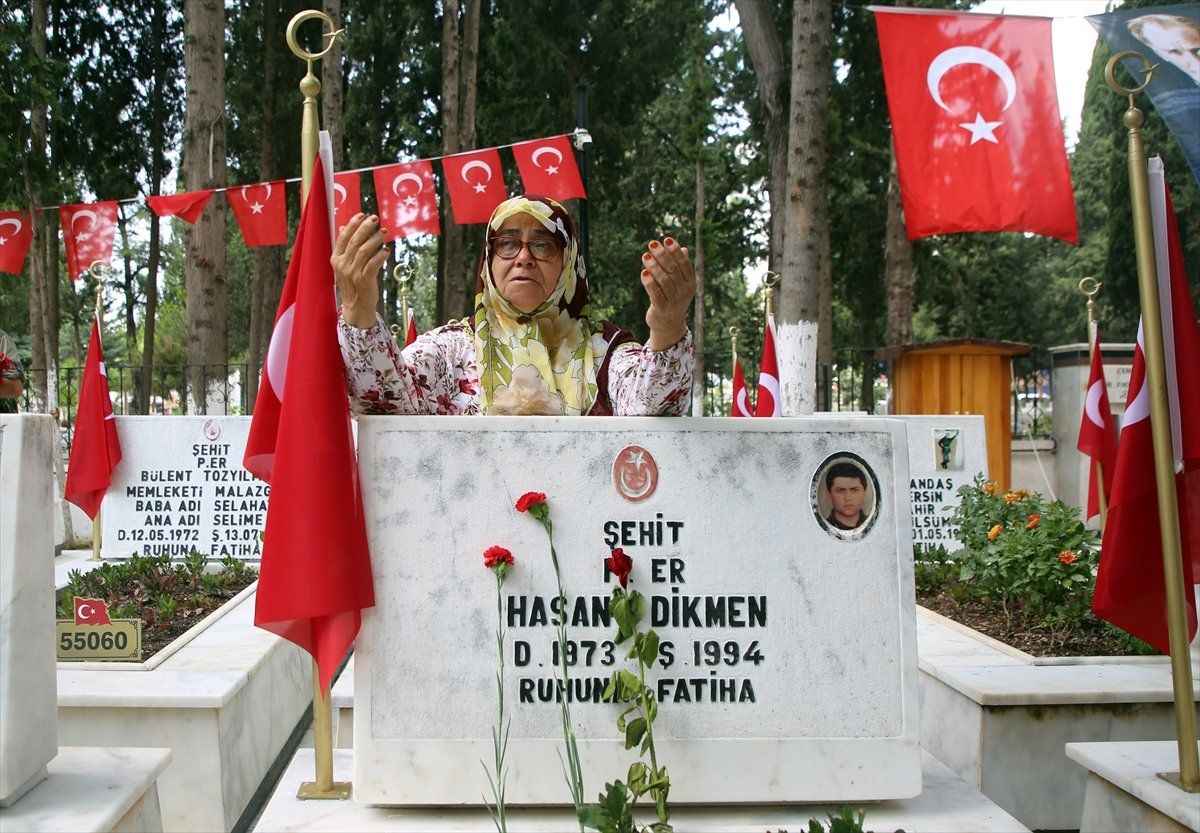 Kurban Bayramı'nın birinci gününde duygusal anların yaşandığı şehitlik ziyaretinde acılarını ilk günkü gibi yaşayan şehit aileleri, gözyaşlarına hakim olamadı.