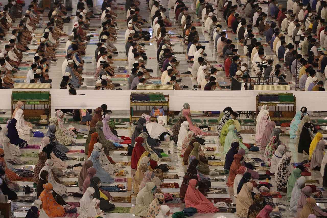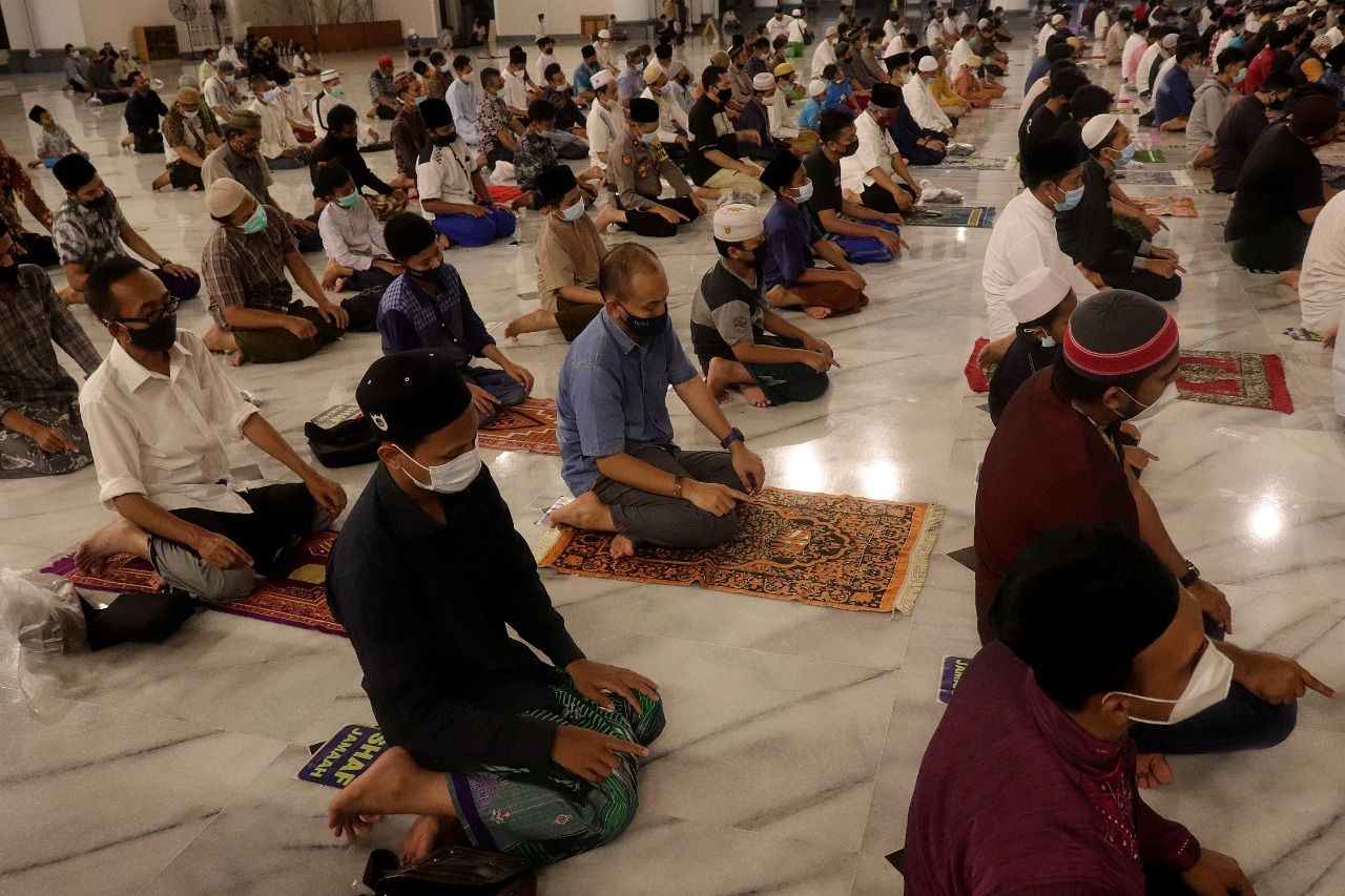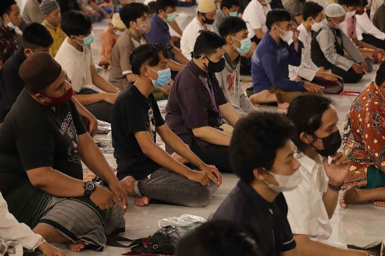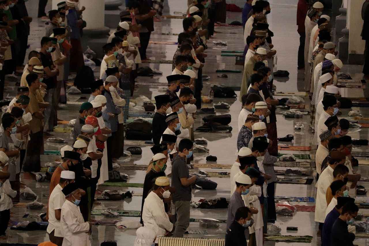 Endonezya'da, koronavirüs tedbirleriyle ilk teravih kılındı