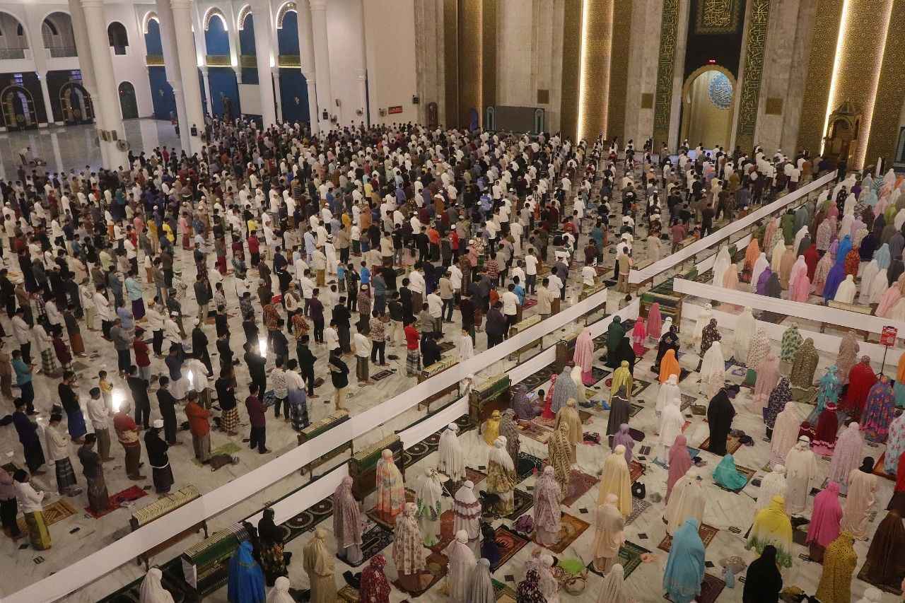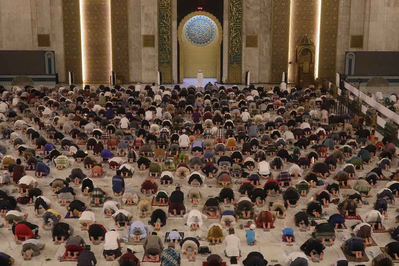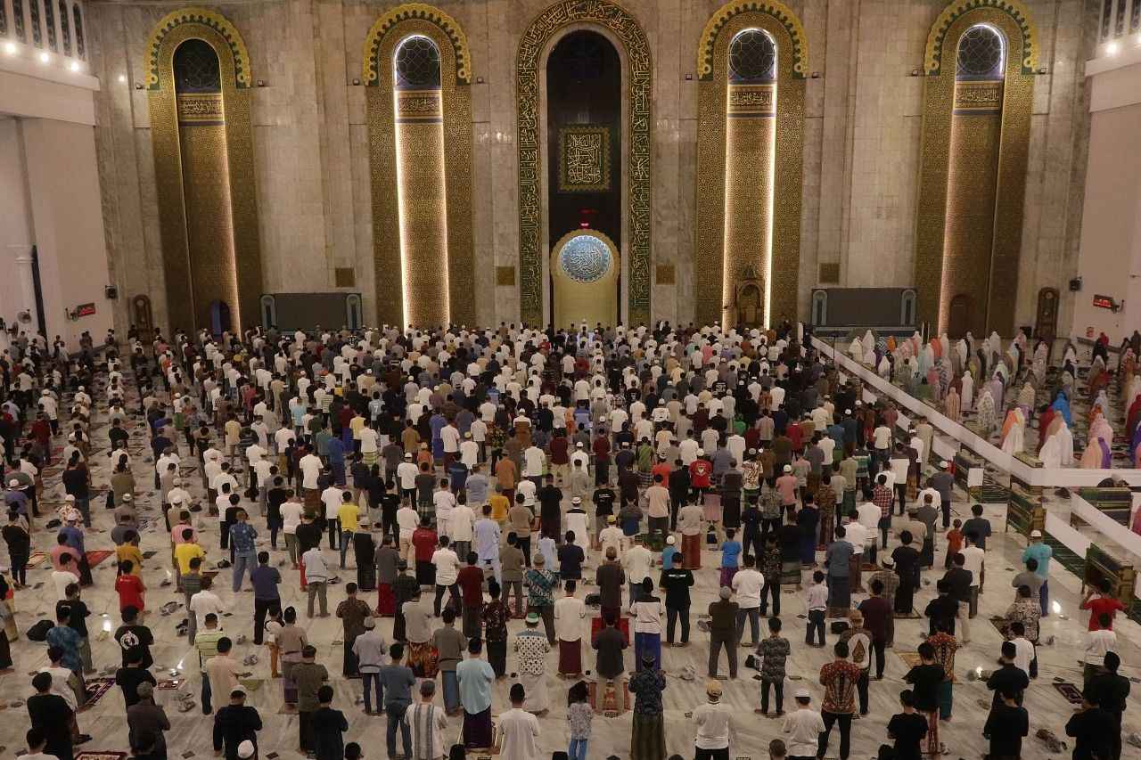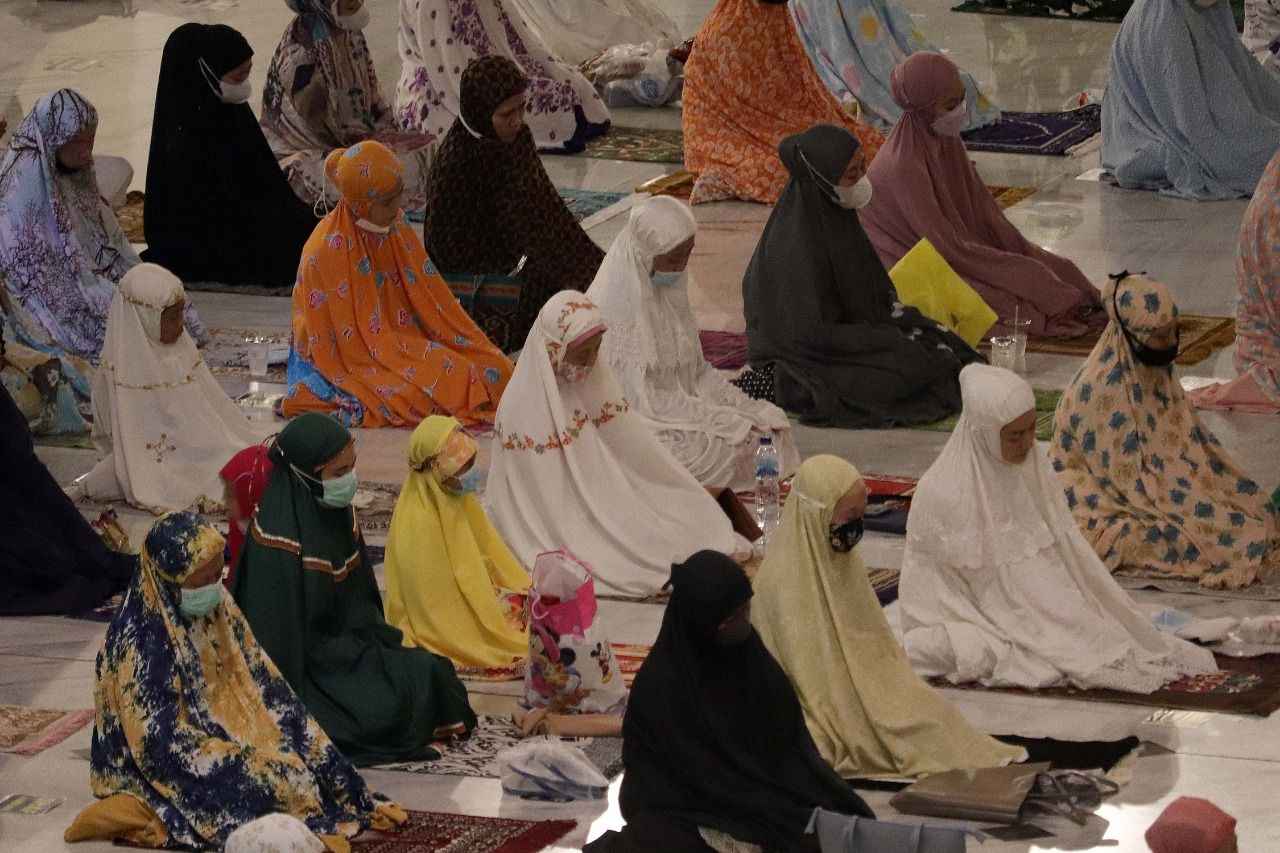 Endonezya'da, koronavirüs tedbirleriyle ilk teravih kılındı