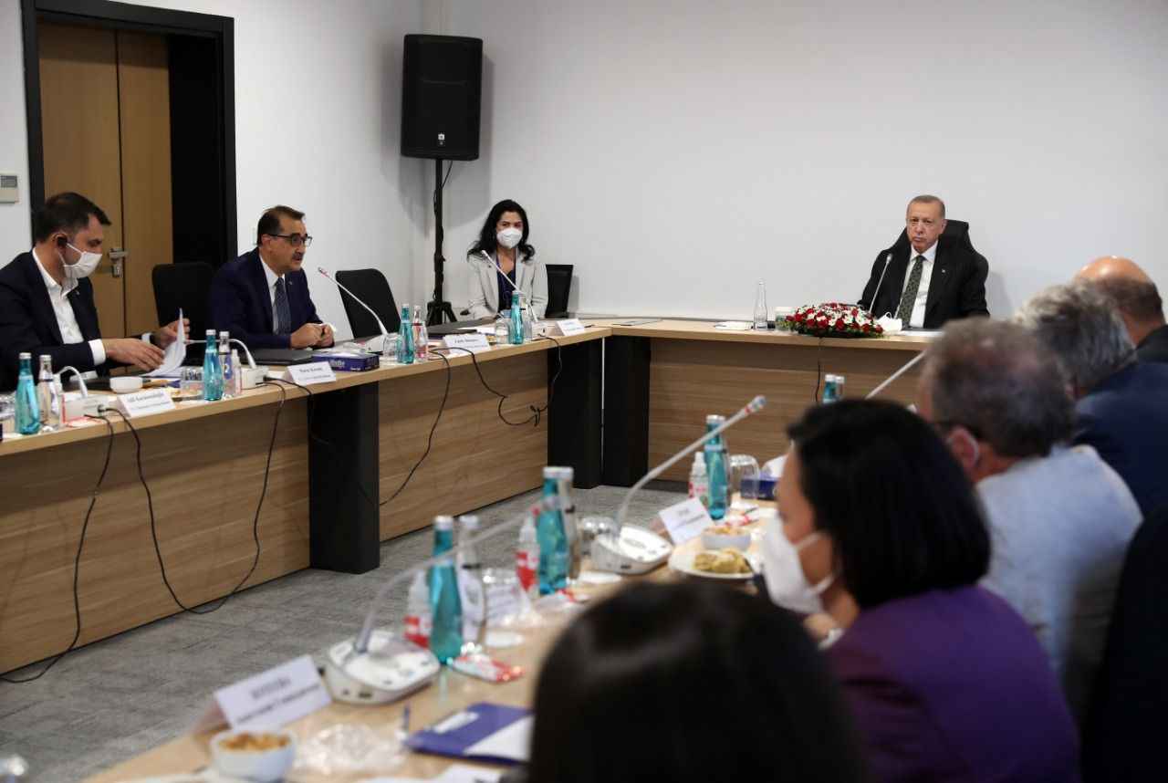 Çalışmalar hakkında yetkililerden bilgi alan Erdoğan, proje öncesinde nükleer enerji konusunda eğitim almak için Rusya'ya gönderilen ve inşaatta aktif görev alan 186 Türk mühendisten 113'ü ile bir araya geldi.