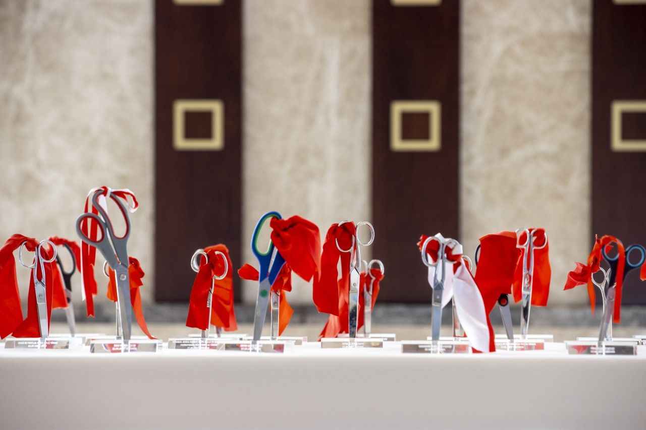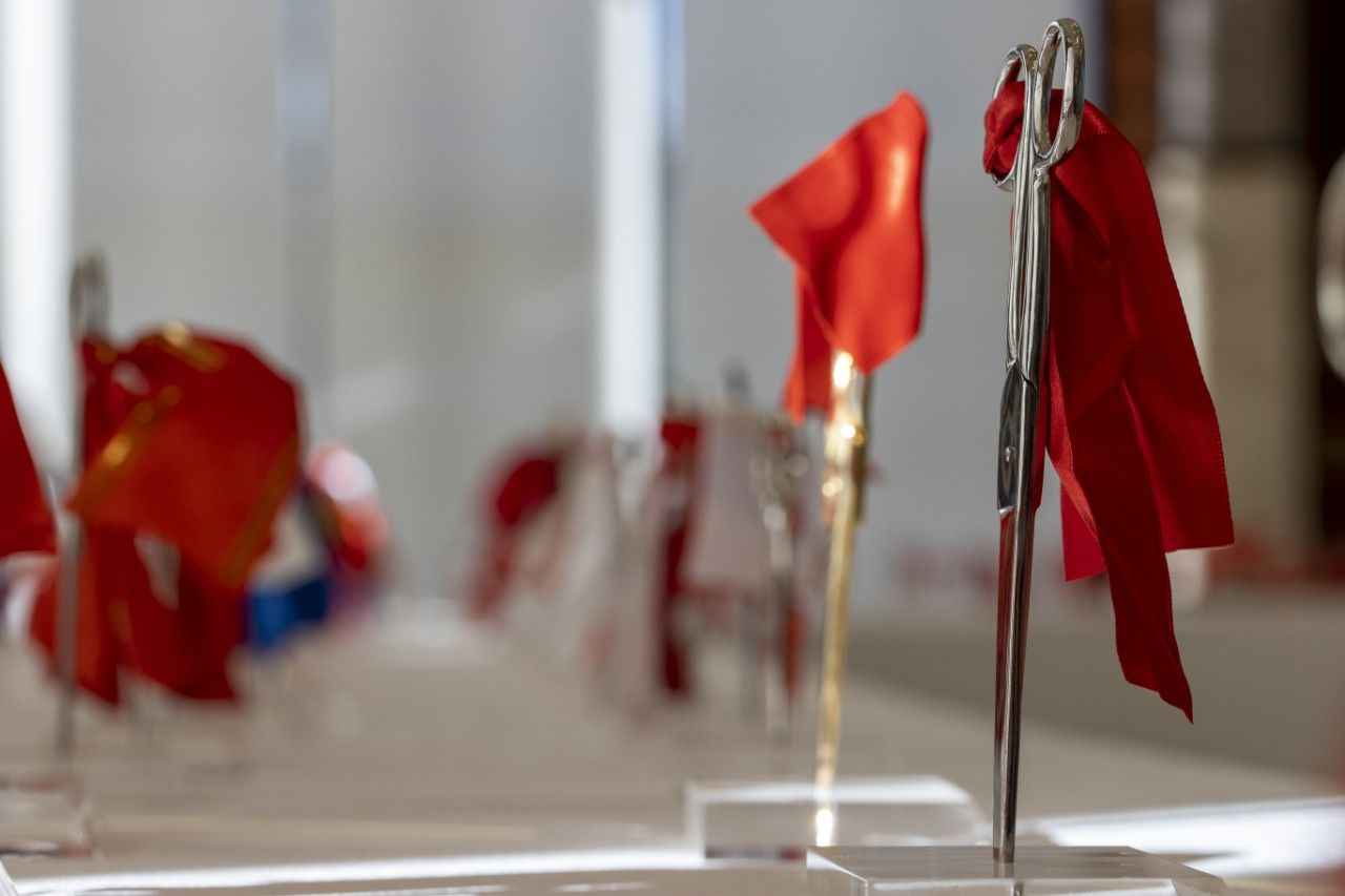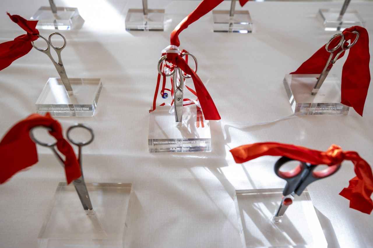 Cumhurbaşkanı Recep Tayyip Erdoğan'ın "Başbakan", "siyasi parti genel başkanı" ve "Cumhurbaşkanı" olarak katıldığı törenlerde açılışını yaptığı eserlerin kurdele ve makasları, Cumhurbaşkanlığı Sergi Salonu'nda sergilendi.