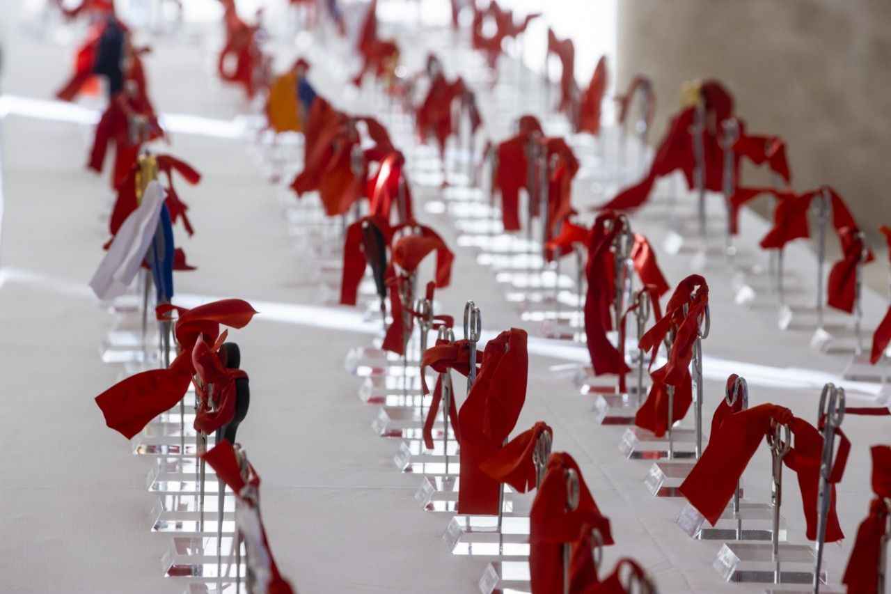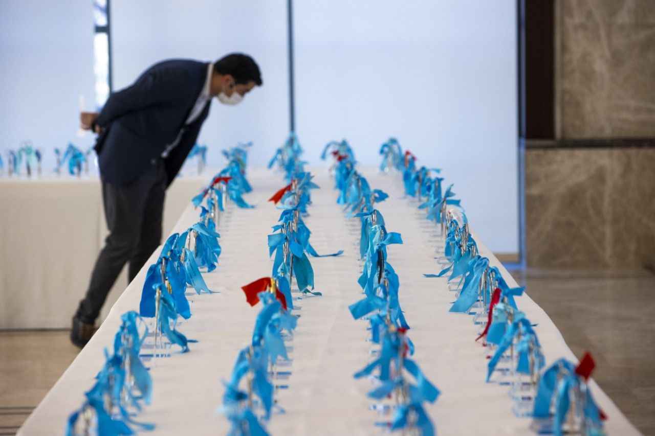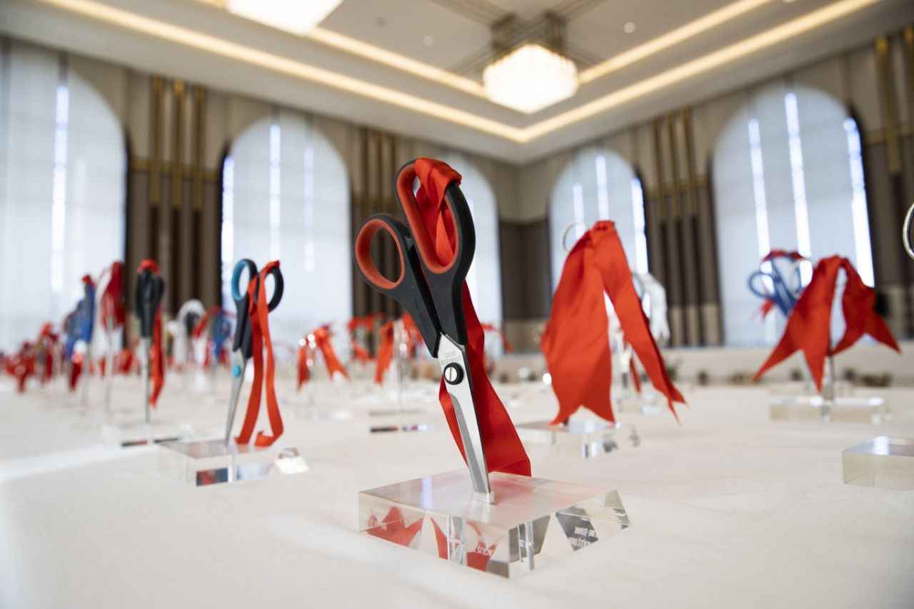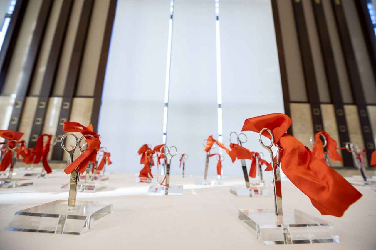 Cumhurbaşkanı Recep Tayyip Erdoğan'ın "Başbakan", "siyasi parti genel başkanı" ve "Cumhurbaşkanı" olarak katıldığı törenlerde açılışını yaptığı eserlerin kurdele ve makasları, Cumhurbaşkanlığı Sergi Salonu'nda sergilendi.