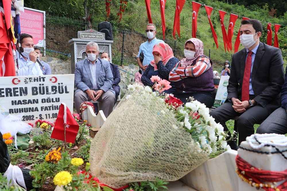 Bülbül'ün, ilçeye bağlı Köprüyanı Mahallesi'ndeki mezarı başındaki anma programına, annesi Ayşe Bülbül ve kardeşleri ile Maçka Kaymakamı Selim Çomaklı, Ağrı Belediye Başkanı Savcı Sayan, Maçka Belediye Başkan Vekili Ömer Faruk Adıgüzel, diğer ilgililer ve vatandaşlar katıldı. Kaymakam Çomaklı, tekrar taziyelerini ilettiği acılı anneye çiçek hediye etti, ayrıca Belediye Başkan Vekili Adıgüzel ile Eren'in kabrine kırmızı karanfil bıraktı.