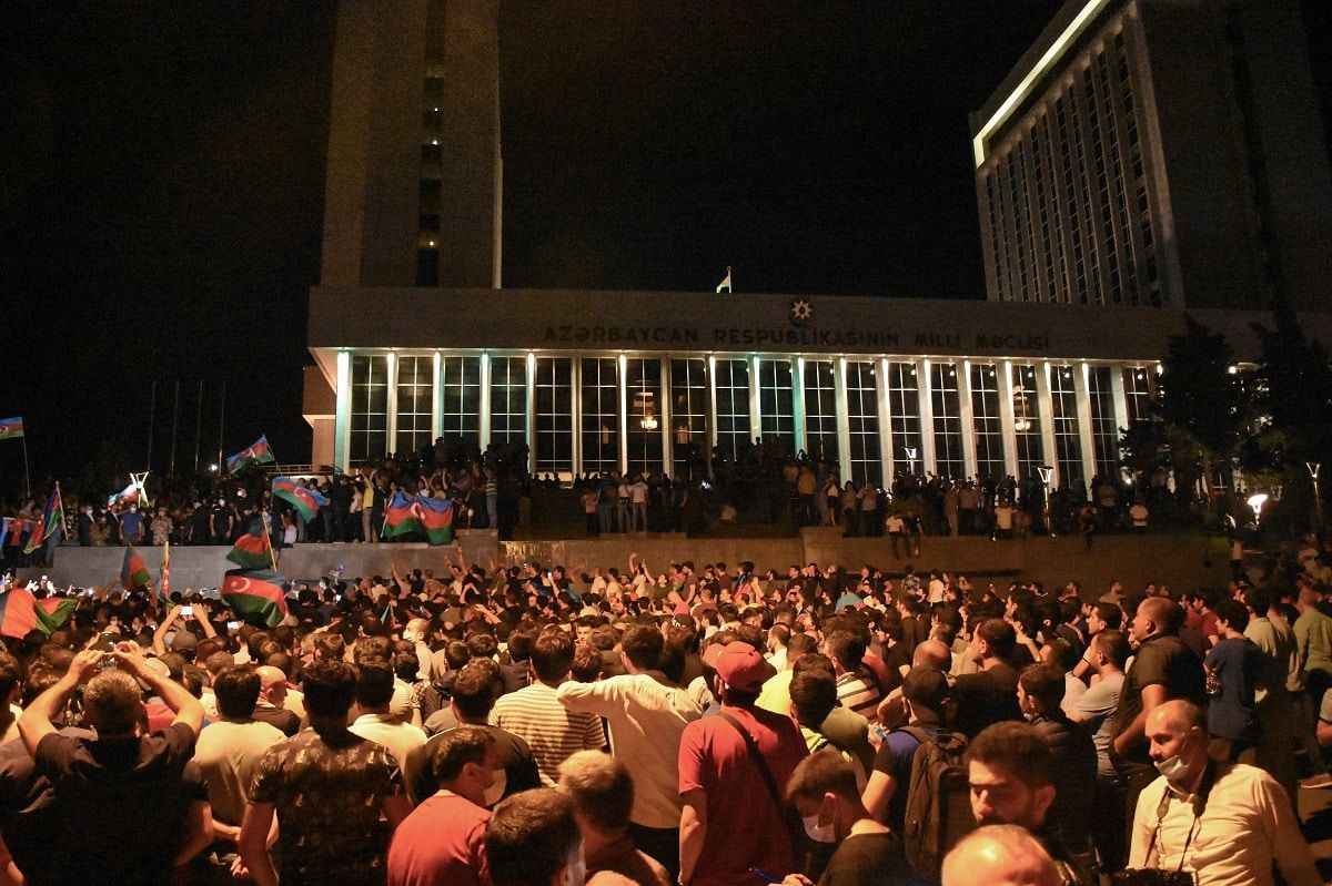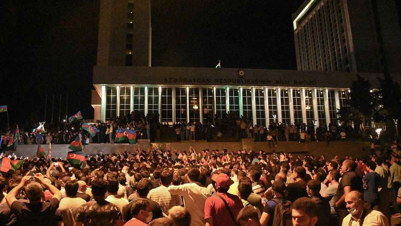 Azerbaycan'da, Ermenistan ordusunun sınırda yaptığı saldırıları ve Dağlık Karabağ'ın işgalini protesto eden halk geceyi, seferberlik talebiyle toplandığı Milli Meclisin önünde geçirdi.