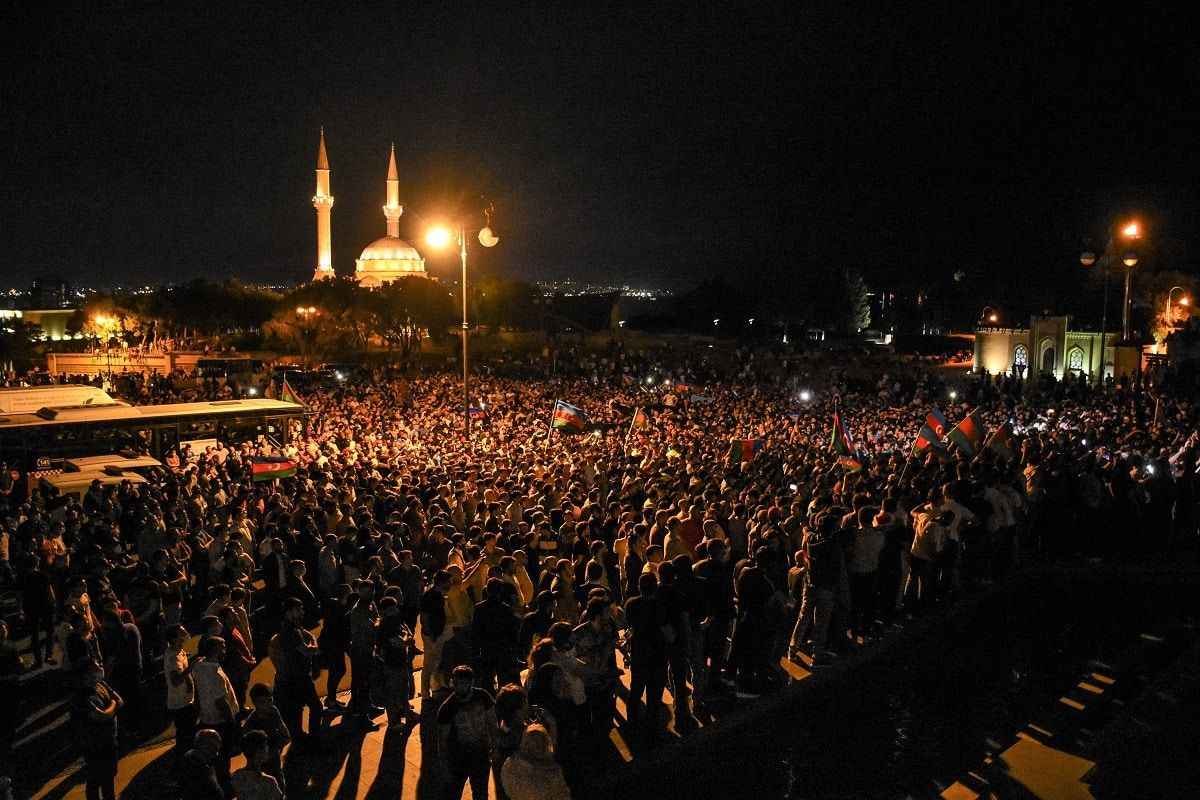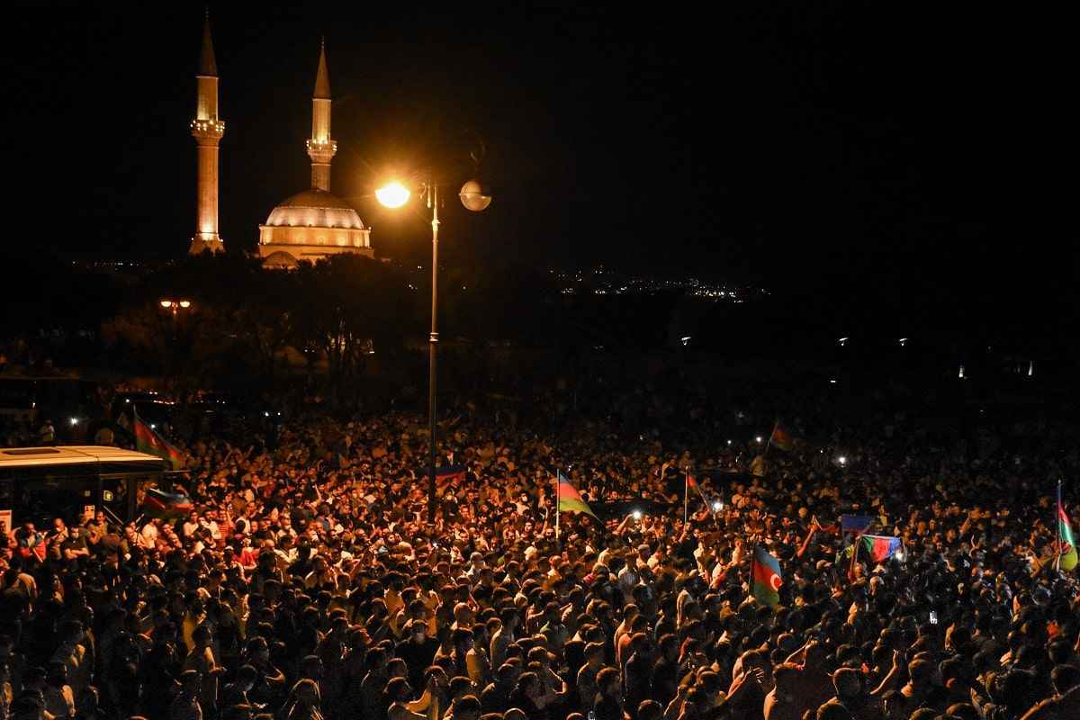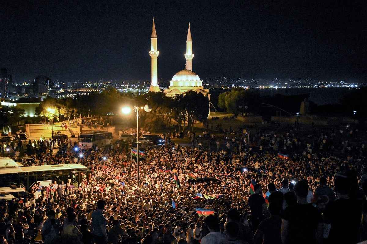 Bakü'de ve çevre şehirlerde yaşayan Azerbaycanlılar akşam saatlerinde başkentin sokaklarında kortej oluşturdu. Ellerinde Azerbaycan bayrakları taşıyan ve "Karabağ bizimdir bizim kalacak" sloganı atan vatandaşlar, Milli Meclisin önünde toplandı. Binlerce kişi burada, seferberlik ilan edilmesi için slogan attı.