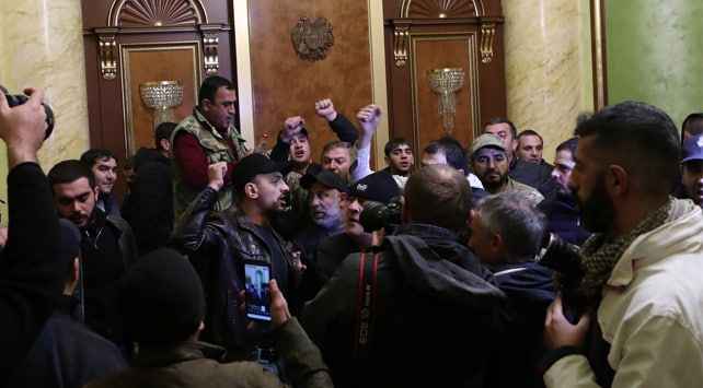 Bazı protestocular Paşinyan’ın makam odasına girerken Ermenistan Başbakanı`na istifa çağrısında bulundu.