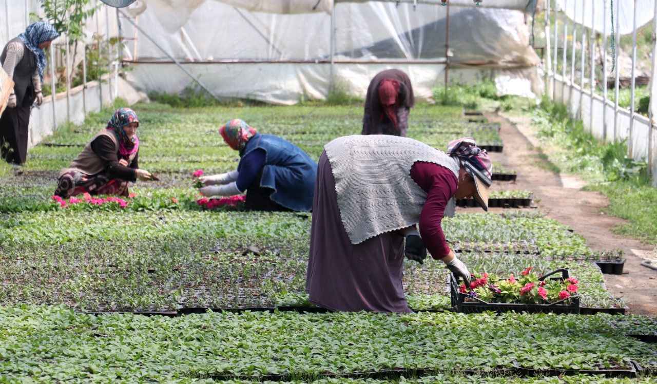 Mevsimsel olarak 10 ila 30 kadına istihdam sağlanan serada üretilen çiçekler, genel olarak belediyelerin peyzaj çalışmalarında kullanılıyor.