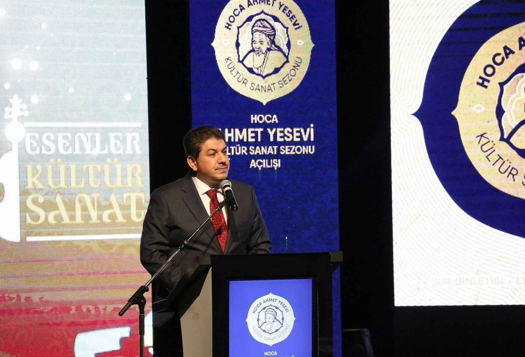Hoca Ahmet Yesevi gerçekten her birimizin özellikle Türk dünyasının bilmesi ve anlaması gereken bir değerdir. Çünkü her sözünde hikmeti arayan, her sözünde güzeli arayan ve her sözünde huzuru arayan bir bilge, bir mutasavvıftır. Bir yıl boyunca Hoca Ahmet Yesevi çalışarak hikmeti, güzelliği yakalayalım ve bu sayede huzuru hep beraber yakalayım istedik. Türk dünyasının manevi lideri olarak nitelendirilen, birlik, beraberlik ve hoşgörüyü yayan bir gönül ve sevgi eri olan Hoca Ahmet Yesevi'nin anlatılması ve bütün Müslümanlara rehber olacak nitelikte söylediği hikmetlerin tanıtılması amacıyla, 2019-2020 yılı kültür sanat sezonunu Hoca Ahmet Yesevi'ye adadık. İnşallah kültür sezonumuz dolu dolu geçecek.