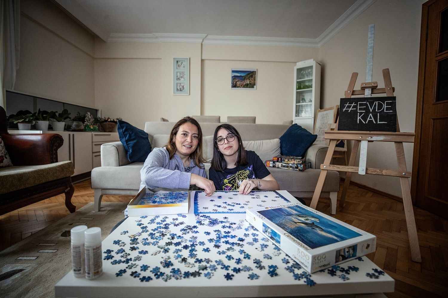 Kızı Ada'nın, uzaktan eğitim sayesinde eğitimine devam ettiğini dile getiren Göncü, "Kızım Ada ile puzzle yaparak zamanı keyifli hale getirmeye çalışıyoruz. Lütfen siz de sevdikleriniz ve kendiniz için evde kalın." dedi.