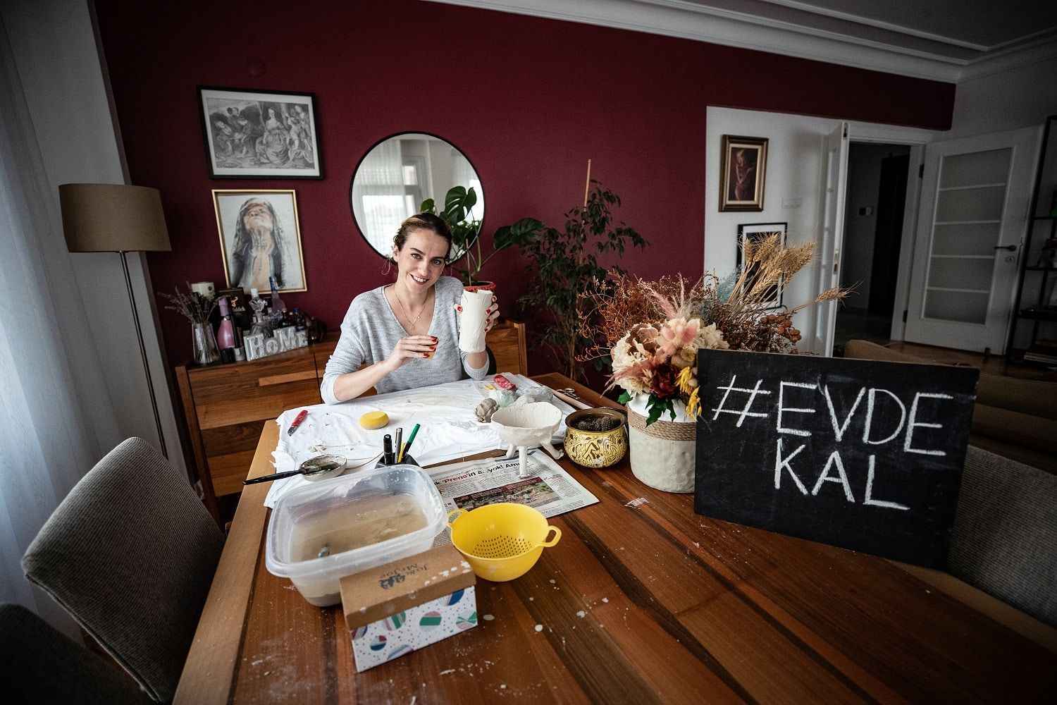 Tasarımcı Nihal Susin de bu süreci tasarımları için araştırma yapmaya, resim, yemek gibi uğraşların yanı sıra uzun zamandır vakit ayıramadığı çamurdan heykel yapımıyla değerlendirdiğini anlattı.