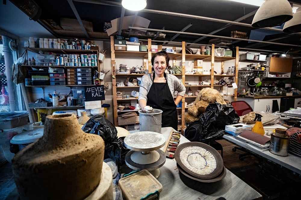 Seramik sanatçısı Aslı Aydemir ise aynı zamanda tasarımlarını yaptığı atölyesi olan evinden çalışmalarına devam ediyor.