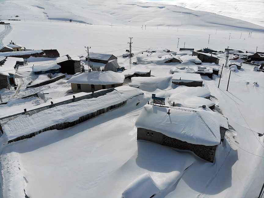 Tek katlı ev ve ahırların kar altında kaldığı köylerde günün büyük bölümünü evlerinde geçiren vatandaşlar, bir yandan hayvanlarını yemliyor, bir yandan da evlerinin zarar görmemesi için damlardaki kar birikintilerini temizliyor.