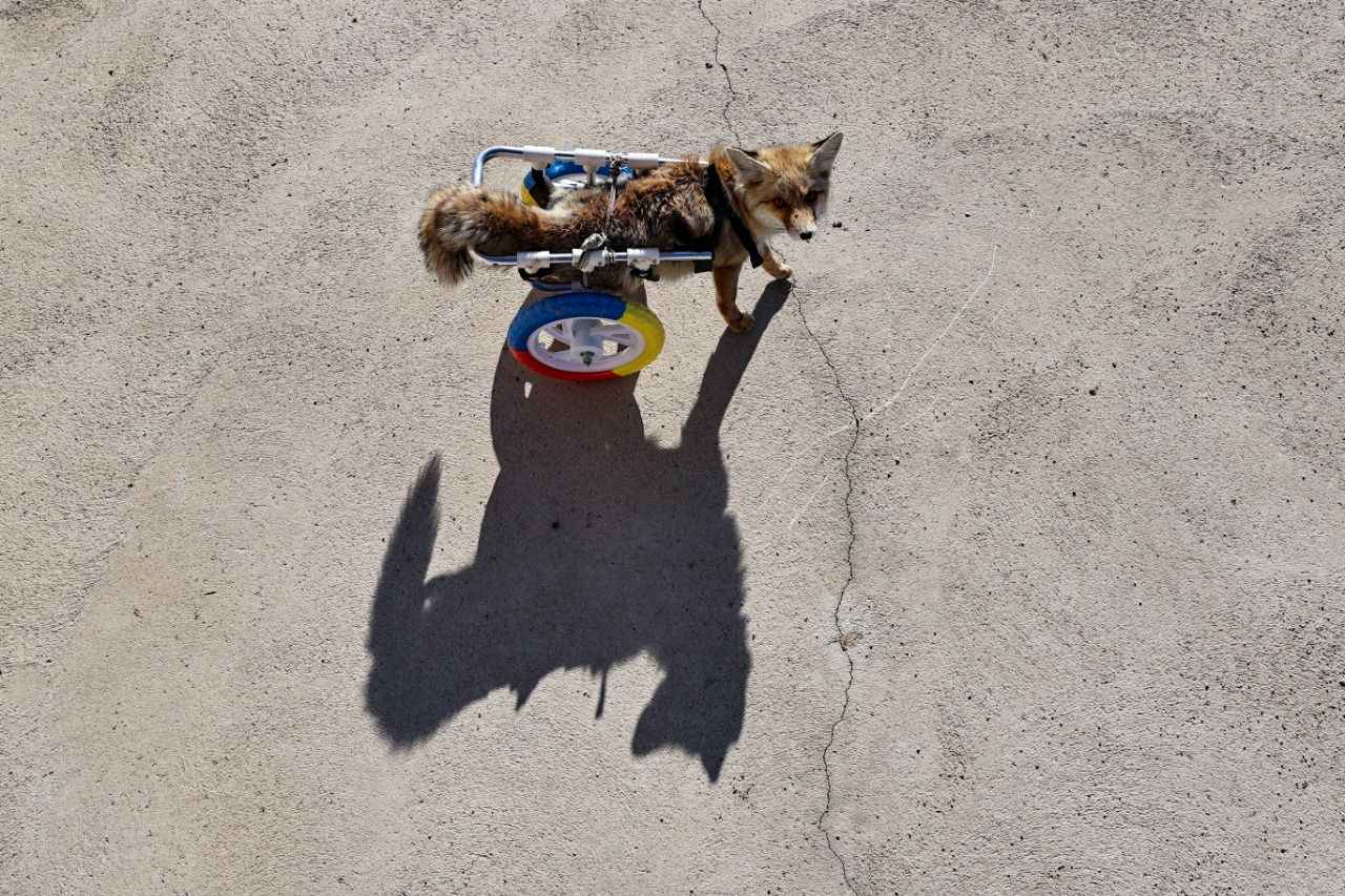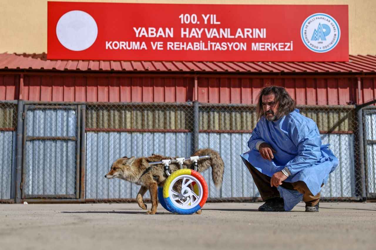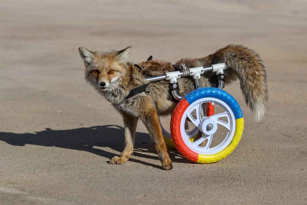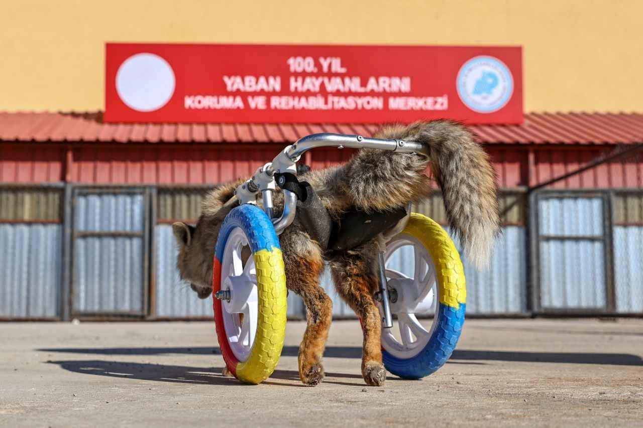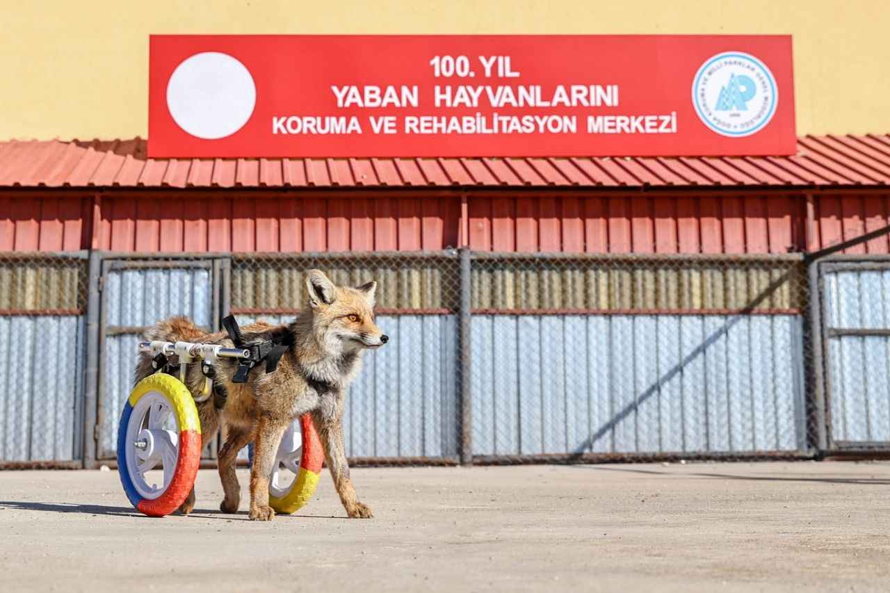 Merkez Müdürü Prof. Dr. Lokman Aslan ve ekibince muayene edilen tilkinin arka iki bacağının kırıldığı ve yürüyemediği tespit edildi. Merkezde geliştirilen tekerlekli yürüteç takılan tilki, belli saatlerde dışarı çıkarılarak gezdiriliyor.