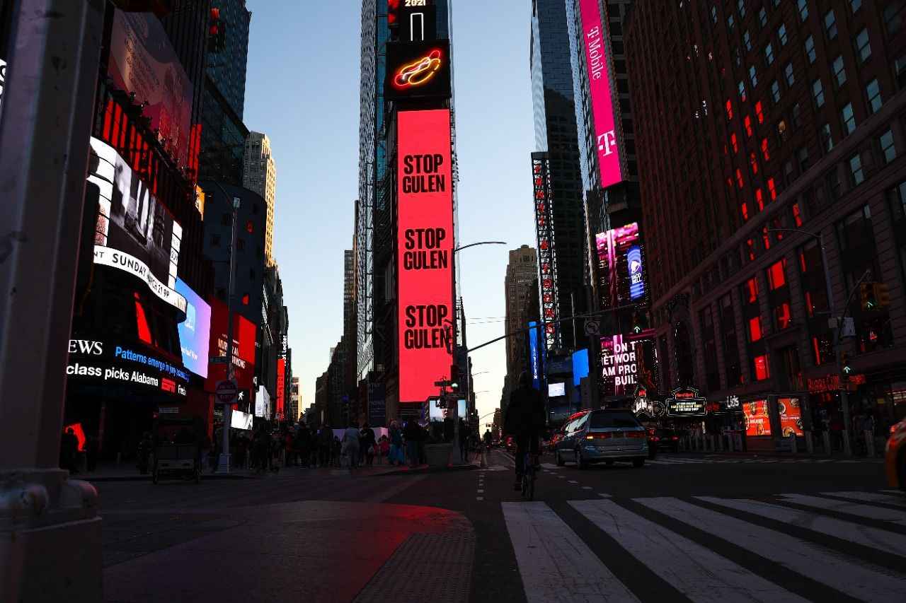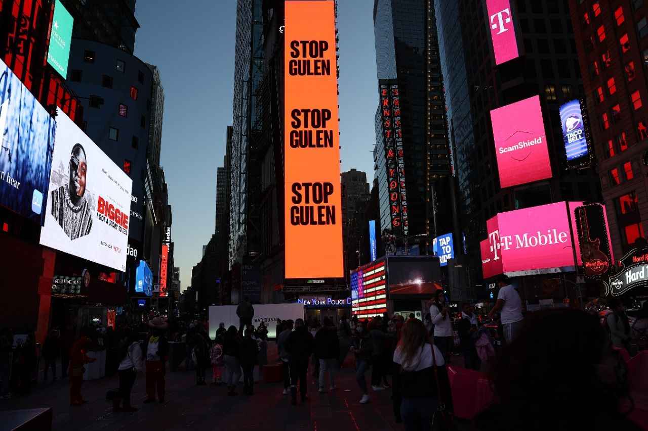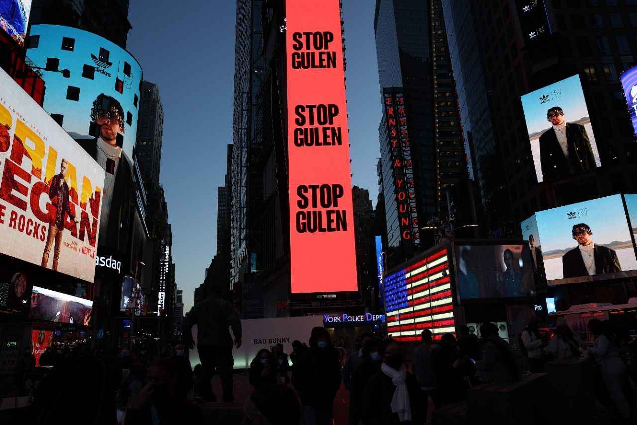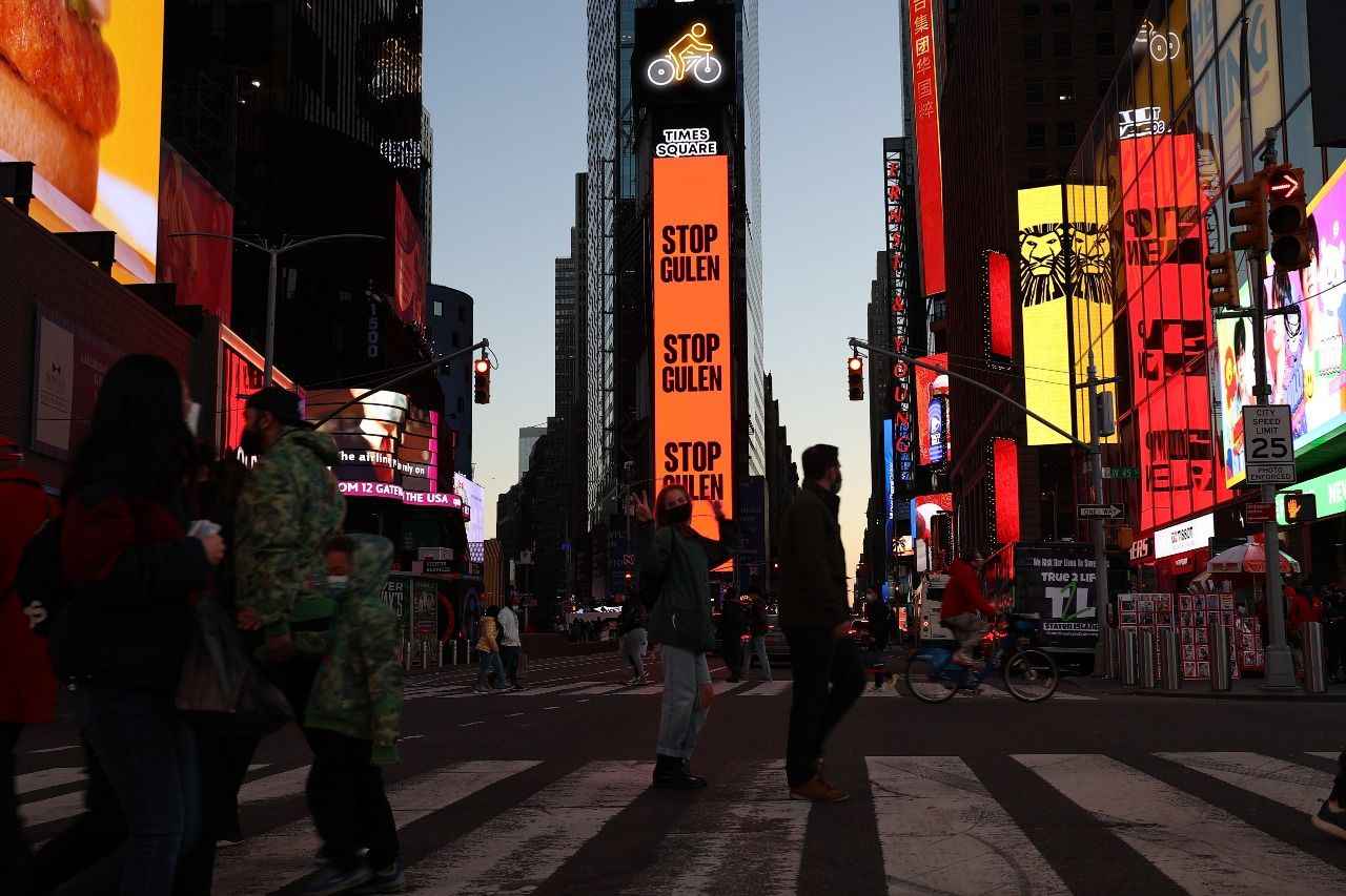 New York kentinin en ünlü bölgelerinden biri olan Times Meydanı'nda, Fetullahçı Terör Örgütü (FETÖ) ve elebaşı Fetullah Gülen'in karanlık yüzü hakkında ilan yayınlandı.