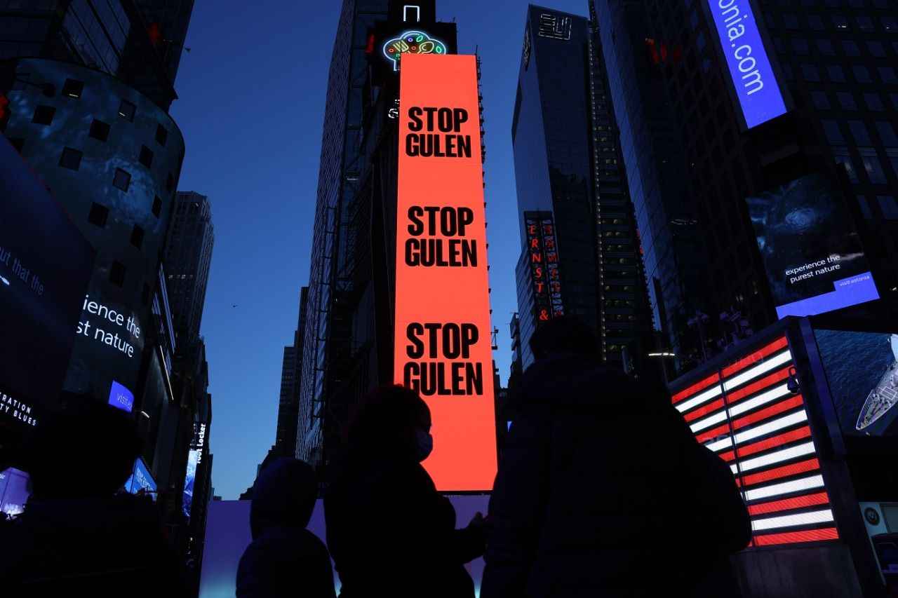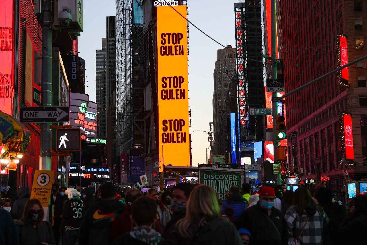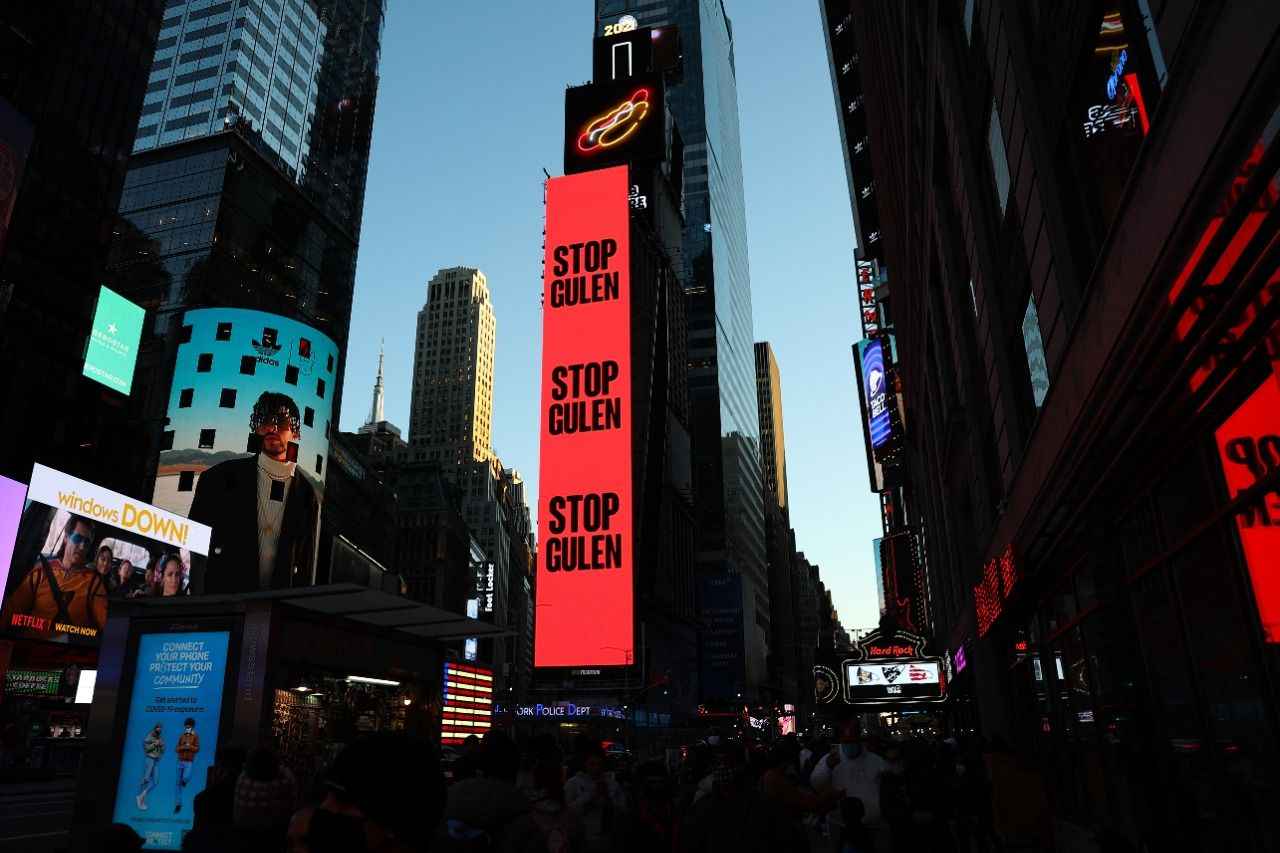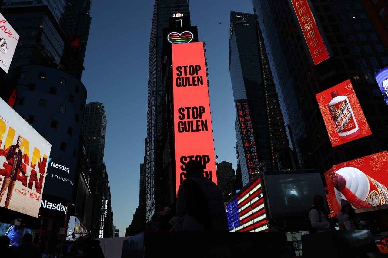 New York kentinin en ünlü bölgelerinden biri olan Times Meydanı'nda, Fetullahçı Terör Örgütü (FETÖ) ve elebaşı Fetullah Gülen'in karanlık yüzü hakkında ilan yayınlandı.