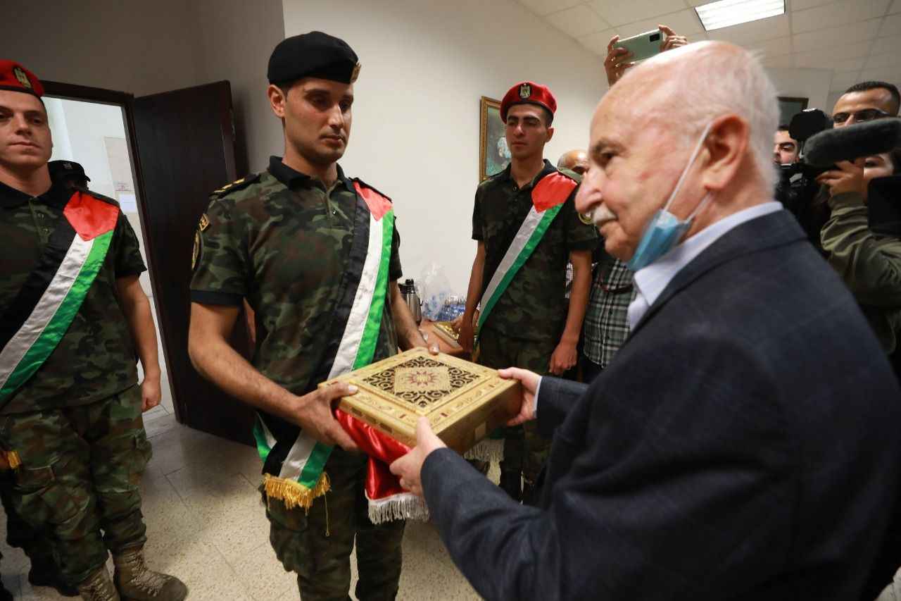 Duygusal anların yaşandığı törende Alul ailesi, Türk ve Filistin bayraklarının bulunduğu kutuyla Osmanlı askerinin emanetini Demirer'e verdi.