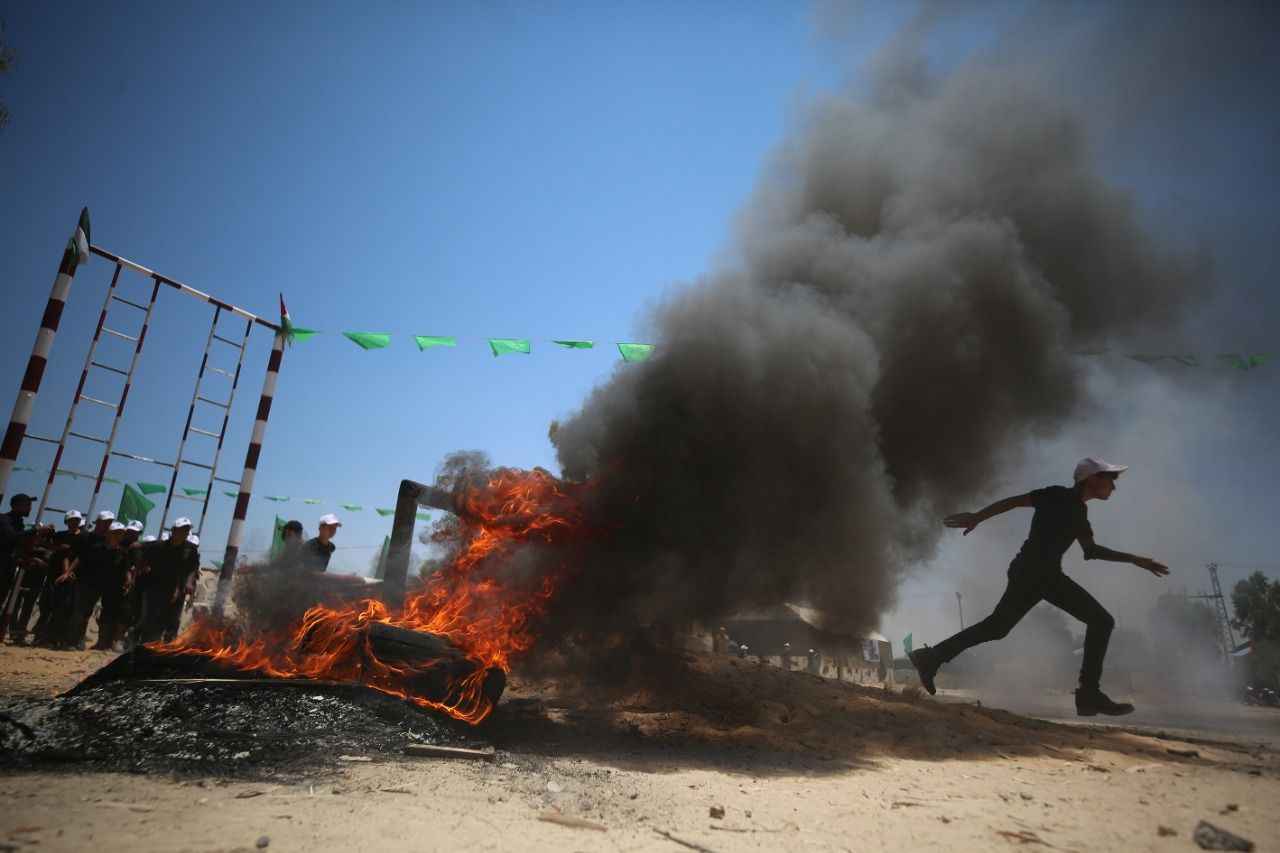 Filistinli gençler yaz kampında askeri eğitim gördü.