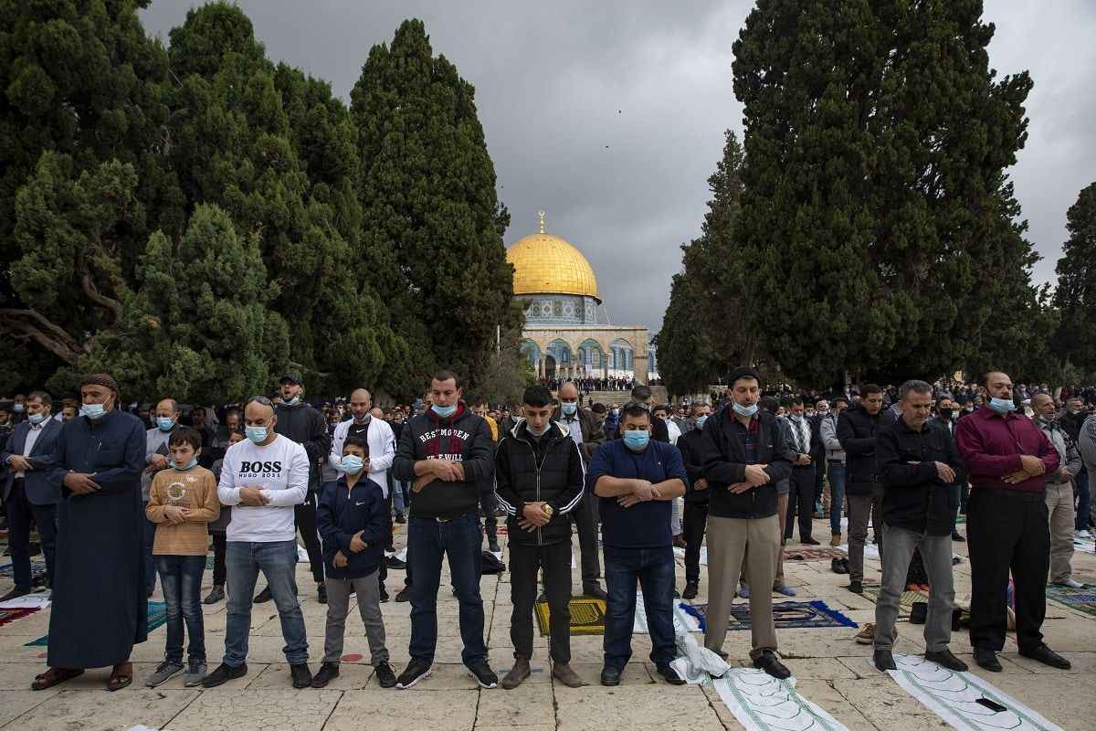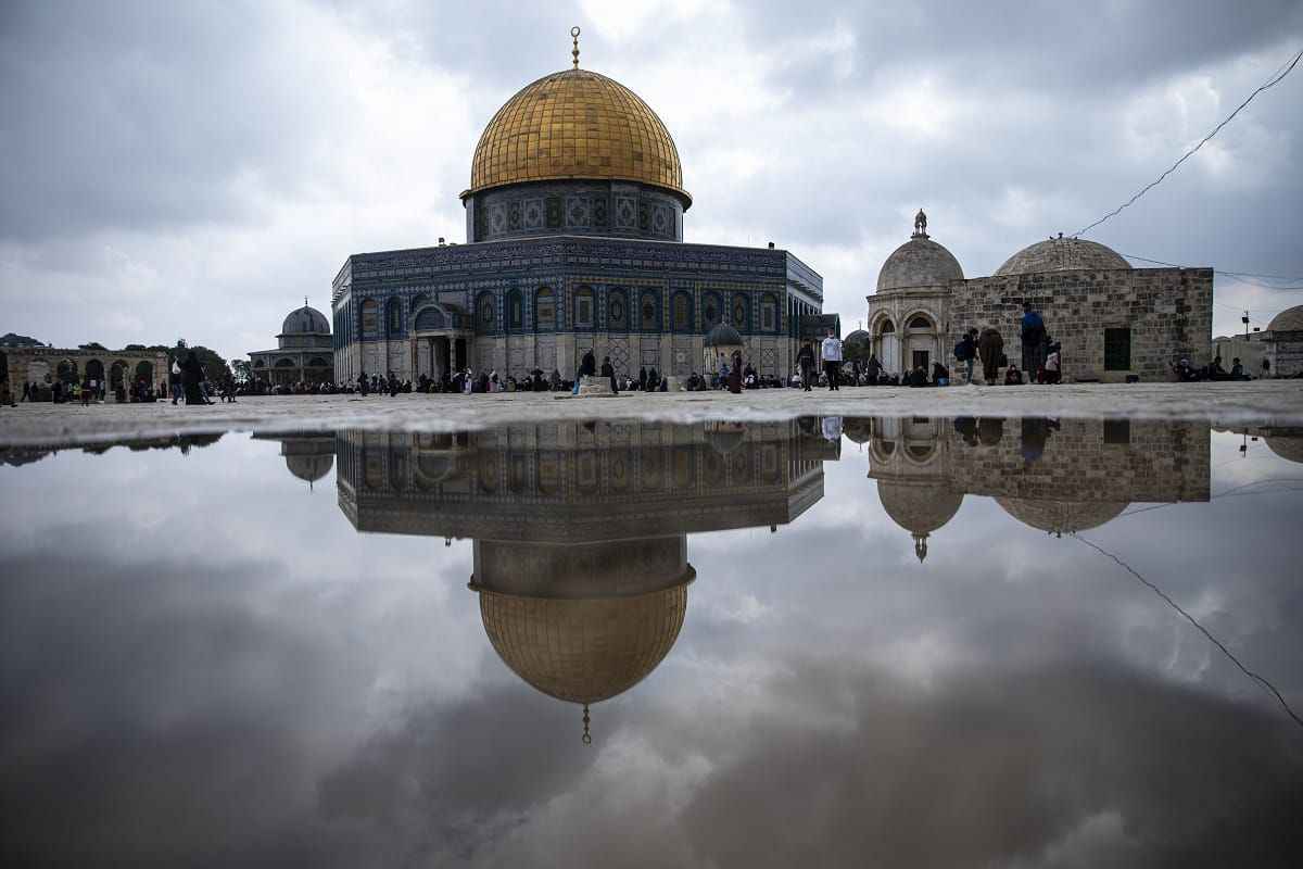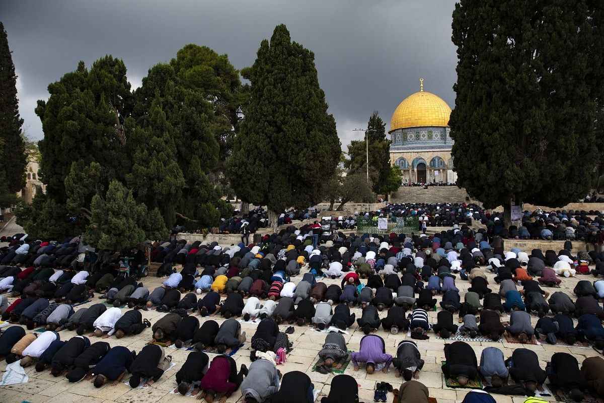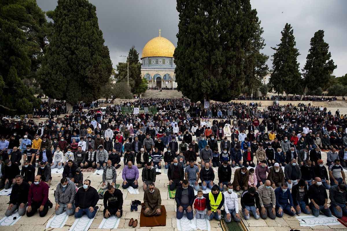 Müslümanlar, cuma namazını için Mescid-i Aksa`ya akın etti. Mescid-i Aksa'nın içinde yer alan Kubbetü's Sahra'nın suya yansıması da güzel görüntü oluşturdu. İşte Mescid-i Aksa'dan cuma namazı görüntüleri.