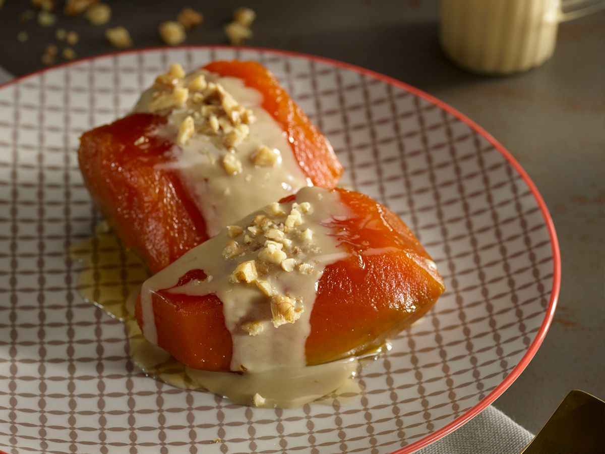 5- Bal kabağı tatlınızı tabaklara alın. Tahin ve ceviz ile birlikte sevdiklerinizle paylaşmayı unutmayın.