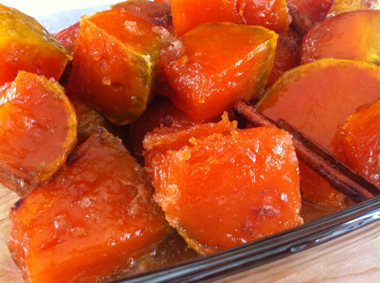 1- Soyulmuş bal kabaklarını bir parmak kalınlığında dilimleyin. Derin bir kabın içerisine alıp üzerine şekeri ilave edin ve bir gece buzdolabında üstü kapalı şekilde bekletin.